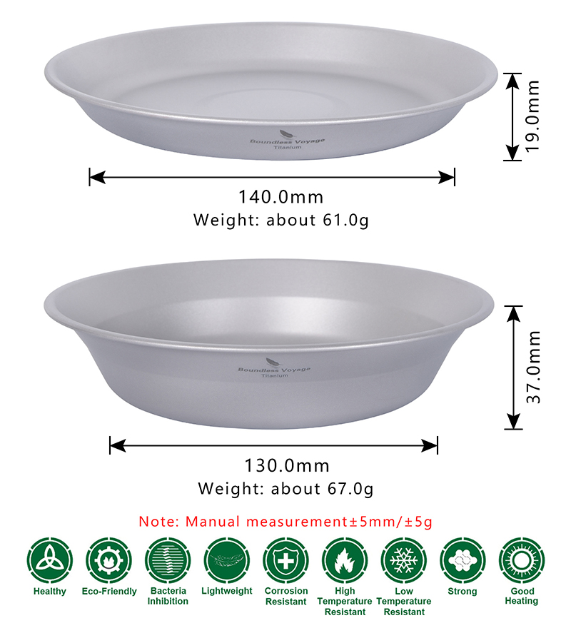Boundless Voyage Pure Titanium Outdoor Camping Dish Cutlery Cookware Debris Kit Flat Bottom Pan Suit
