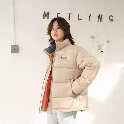 Winter ins harbor wind black short bread clothes cotton clothes women Korean loose thick oversize winter coat