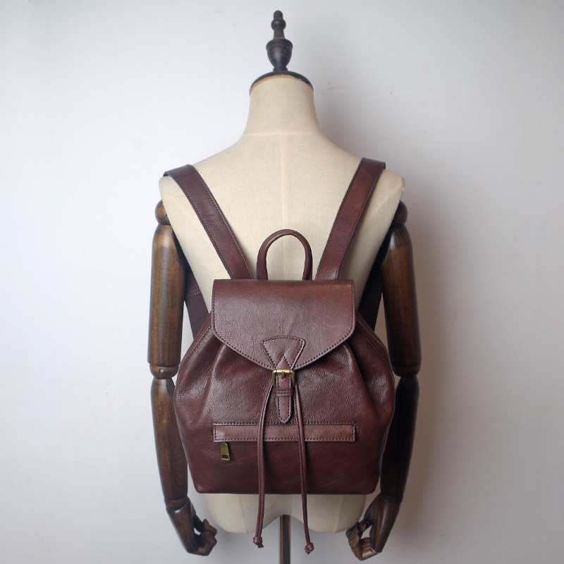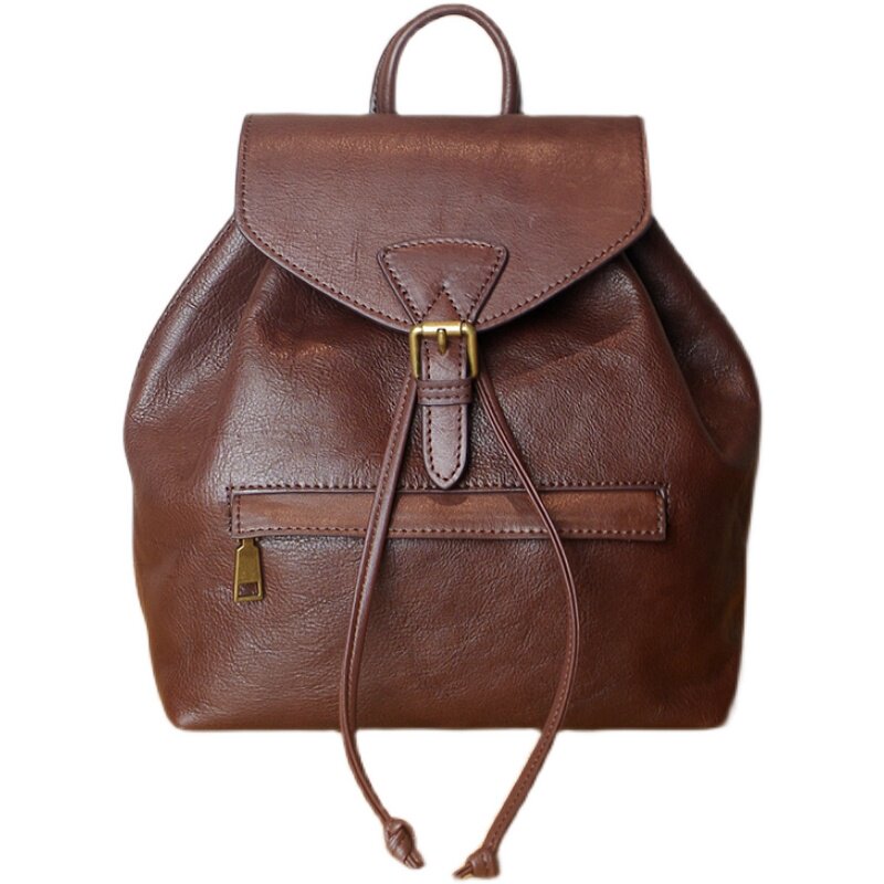 High-quality leather women's shoulder bag first layer cowhide niche design sense new retro fashion leather small backpack