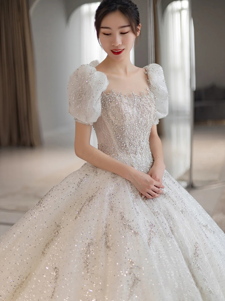 French light wedding dress 2022 new bride's main yarn one-shoulder luxury high-end texture trailing palace style small man