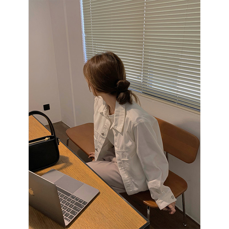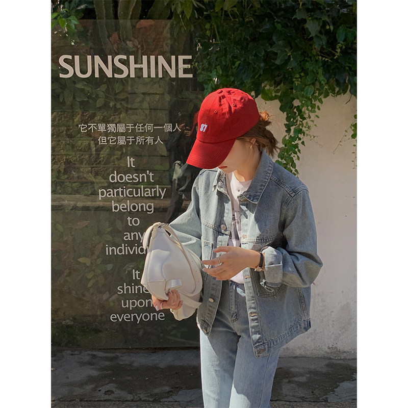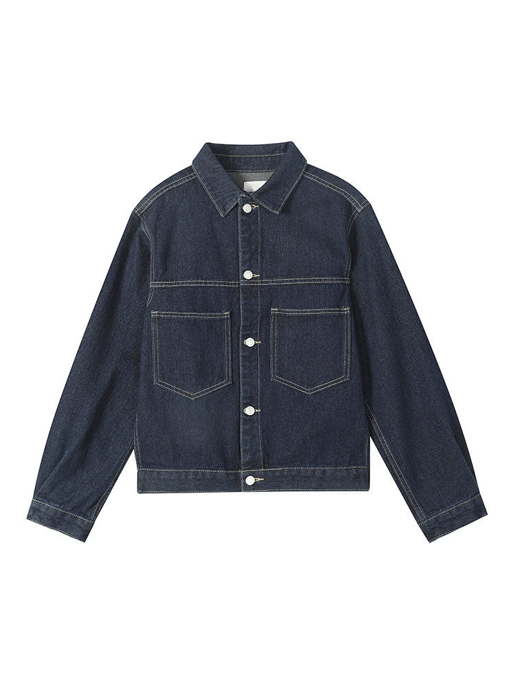 Chen Yuxi customized dark blue denim coat women's spring and autumn 2022 new Korean version of loose retro short coat