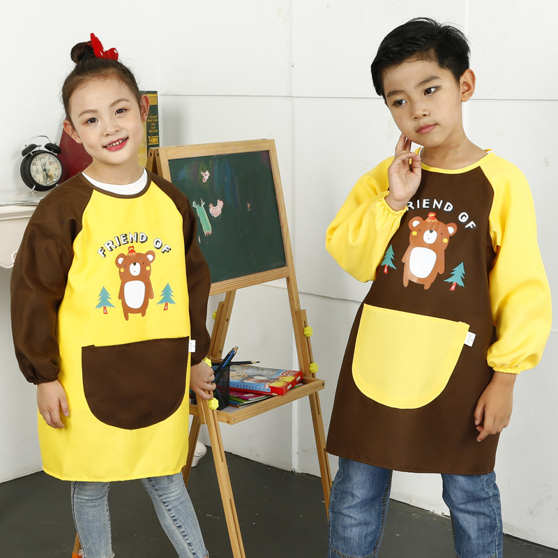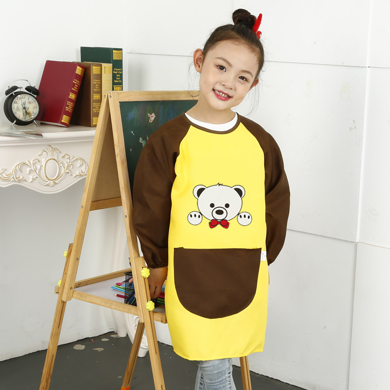Yellow coffee sleeve breathable long-sleeved apron*Forest bear coffee color yellow sleeve breathable long-sleeved apron*Forest bear yellow coffee sleeve breathable long-sleeved apron*Little bear coffee color yellow sleeve breathable long-sleeve apron*Little bear yellow coffee sleeve breathable