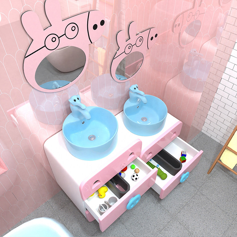 Children's kindergarten children's cartoon bathroom cabinet parent-child color wash basin bathroom cabinet high and low cabinet for children