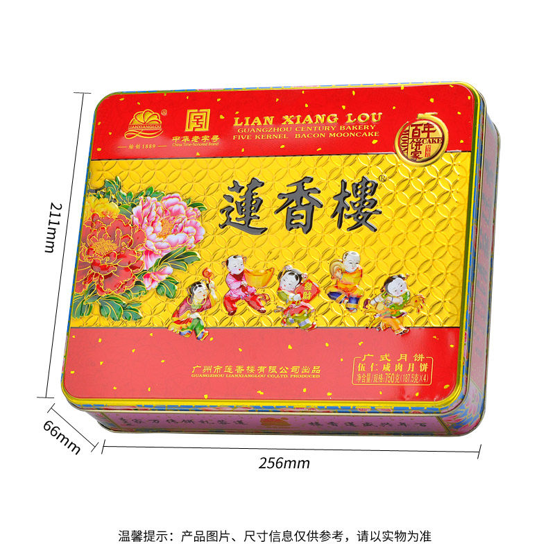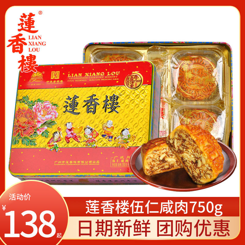 Guangzhou Lianxianglou Mooncake Five Kernel Bacon 750g Gift Box Cantonese Double Yellow and White Lotus Seed Paste Mooncake Mid-Autumn Festival Gift