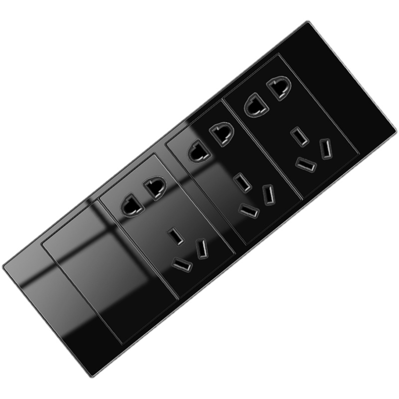 Household upper wall switch socket whole house package 118 glass black high power panel 9 20 hole multi-hole plug