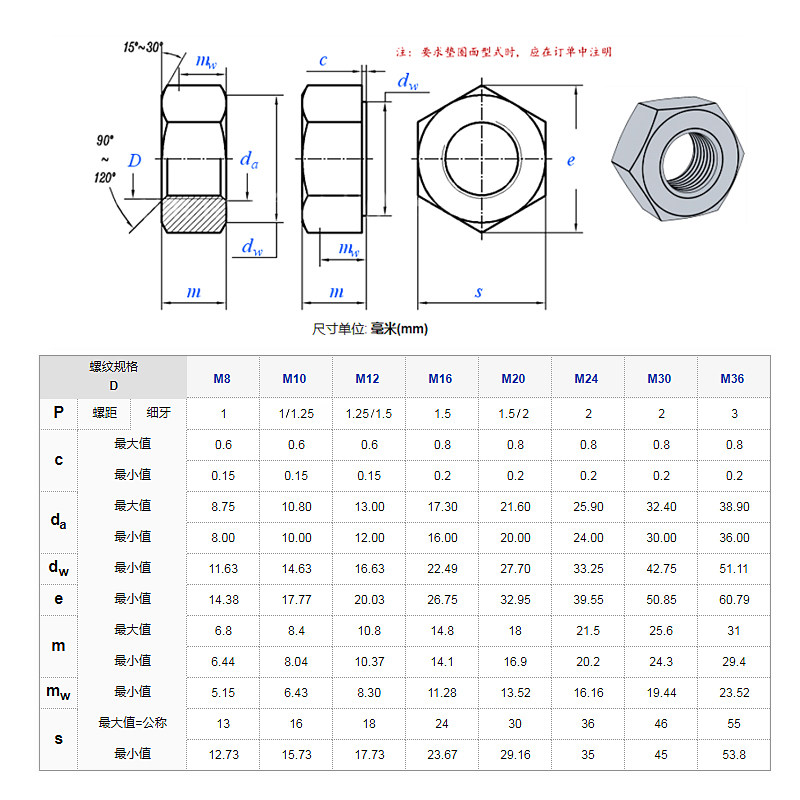 High strength fine tooth hexagonal nut GB6171 M814162022-M56 * 1 25 * 1 5 * 2 0 young tooth screw cap