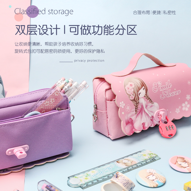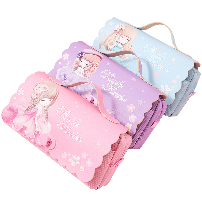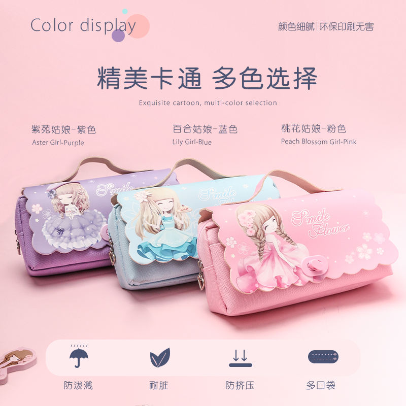 Portable elementary school children pen bag girl's pencil case ins and day students large capacity children lead pencil case high face value pencil bag cute princess girl heart canvas ultra cute cartoon girl stationery bag