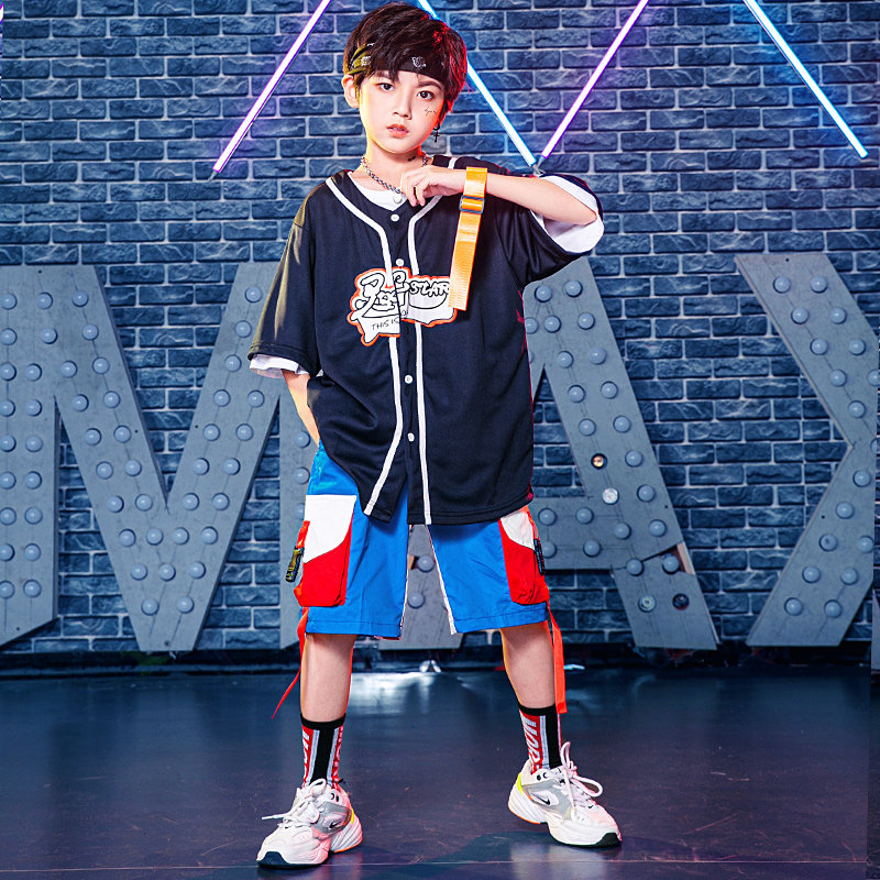 Boy Street Dance Costume Hip Hop Hiphop Children Street Dance Suit BBOY Early Childhood Street Dance Out of the Baseball Jersey Woman