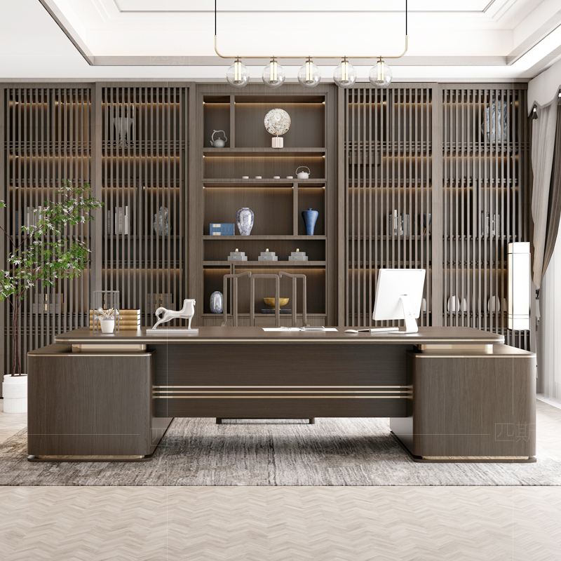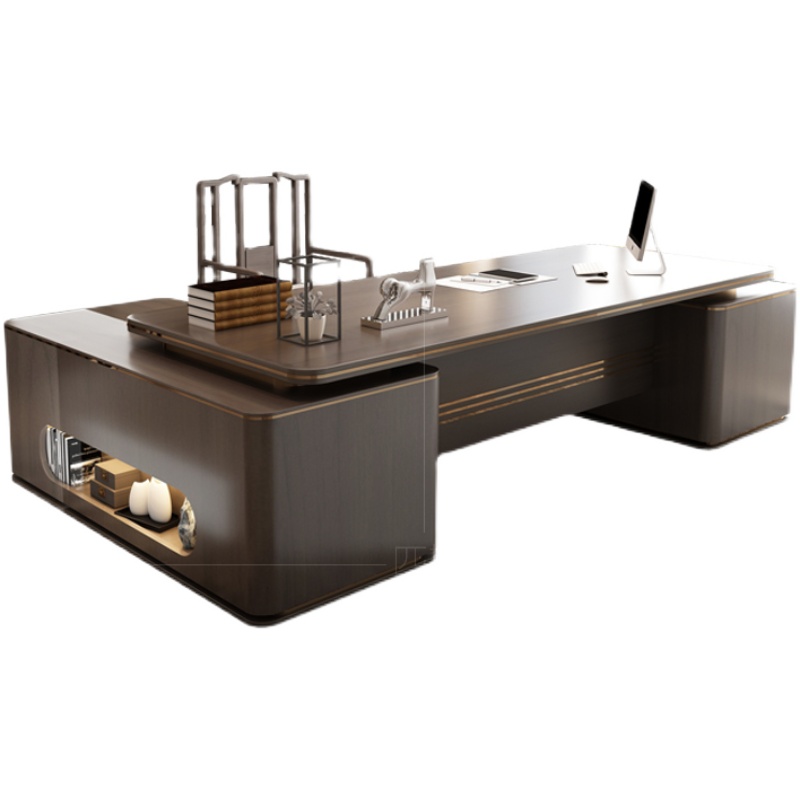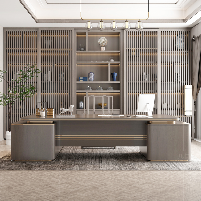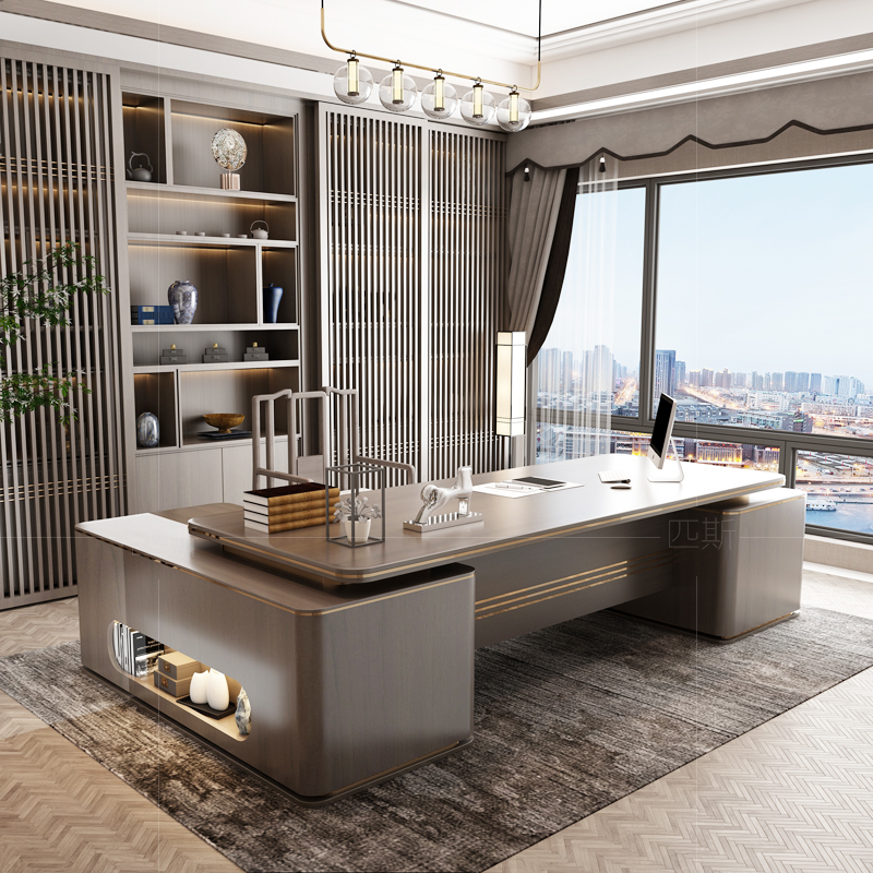 New Chinese Light Lavish Boss Office Table And Chairs Portfolio Office Brief Solid Wood President Desk Big Bandai Customized