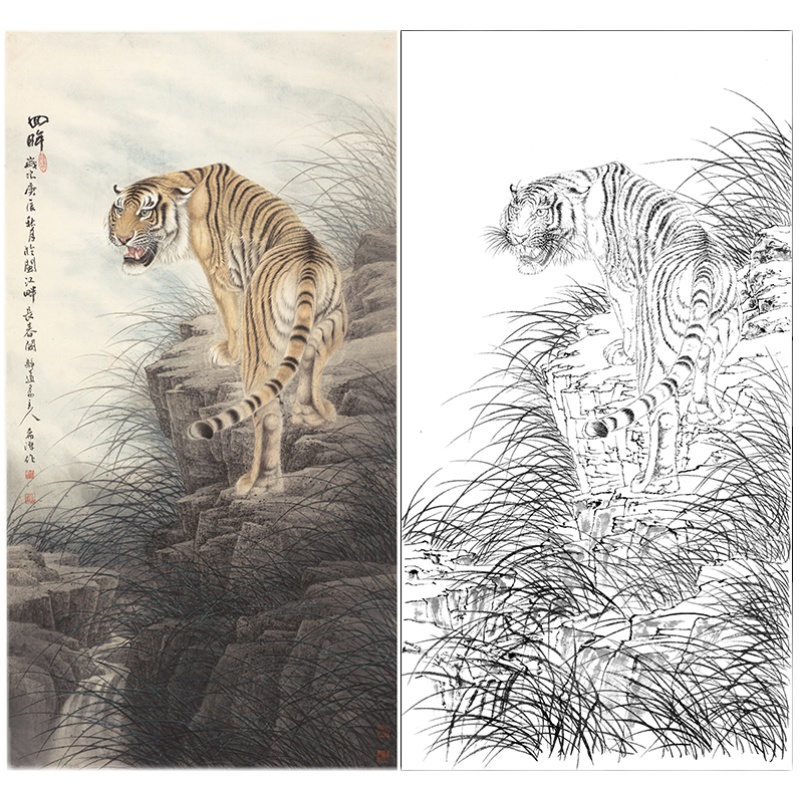 Meticulous painting white drawing draft, Tiger going up the mountain to look back Dong Xiyuan line draft physical printing non-electronic version A636