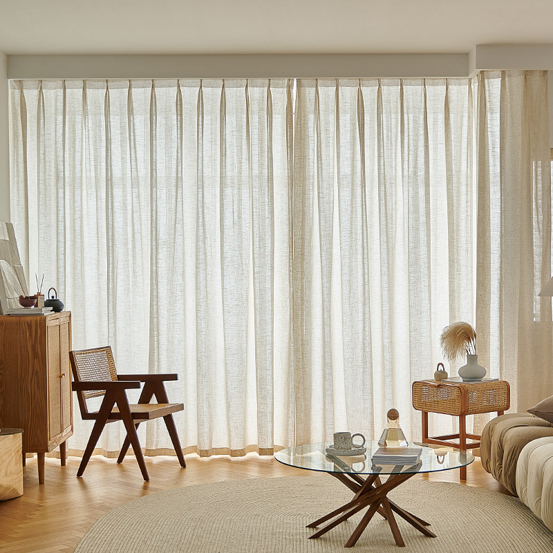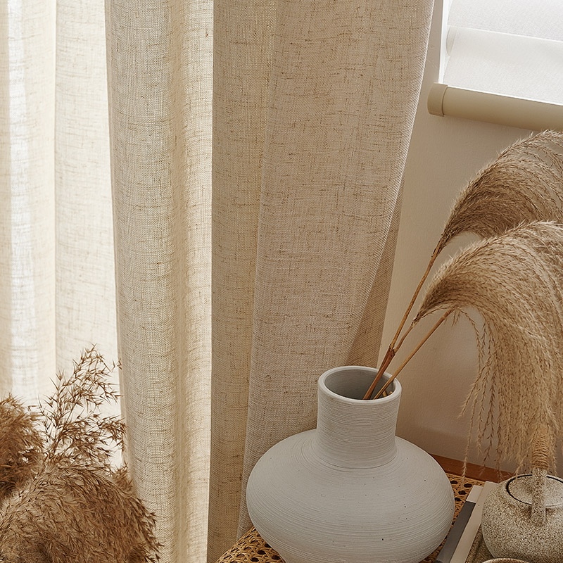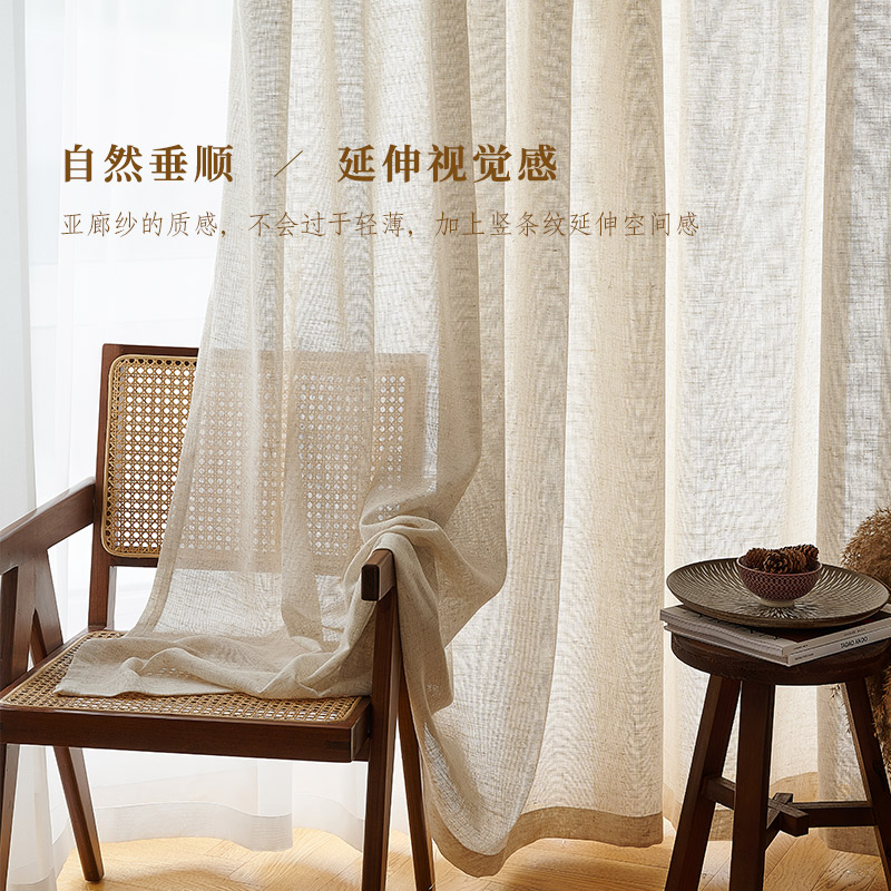 Japanese flax curtains are illuminated by the balcony floating window in 2021 new living room cotton window