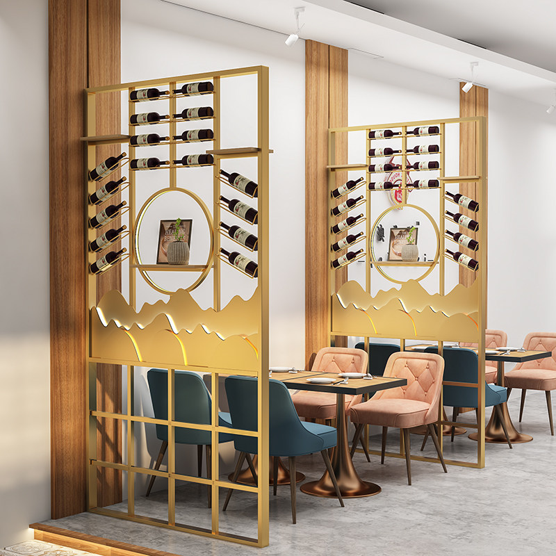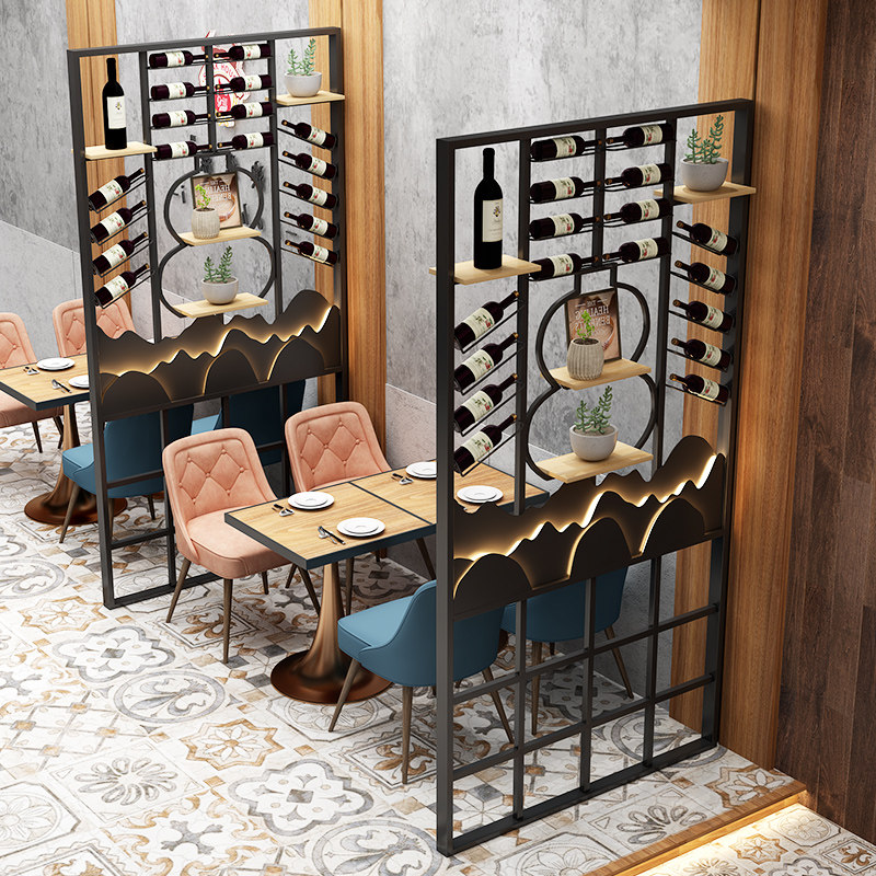 Industrial Wind Wine Cabinet Dining Room Creative Ground Wine Show Shelves Luminous Iron Art Wine Rack Partition Screen