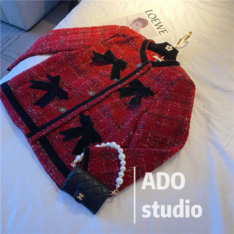 Fan-style small fragrant wind coarse flower, and jacket woman 2022 spring autumn new name Yuanyuan single row button short fur long sleeve blouse