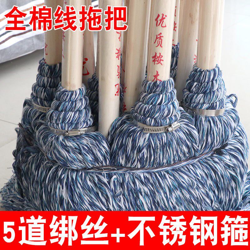 Round head wooden rod ordinary mop cotton thread household old-fashioned mop absorbent mop hotel property large cotton mop