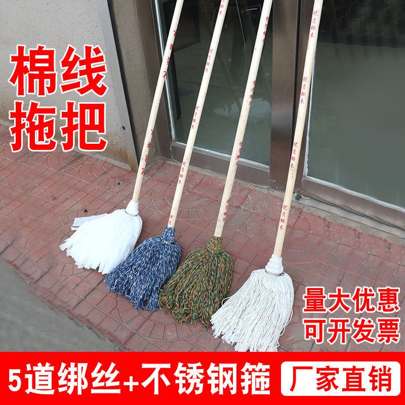 Wooden pole stainless steel hoop white cotton thread mop wooden pole stainless steel hoop blue cotton thread mop wooden pole stainless steel hoop yellow cotton thread mop wooden pole stainless steel hoop orange cotton thread mop wooden pole stainless steel hoop non-woven cloth mop pulley