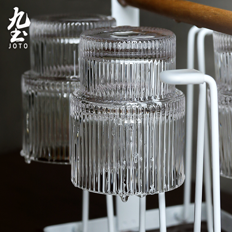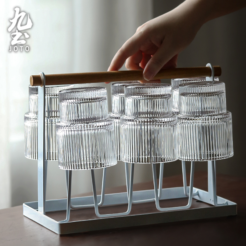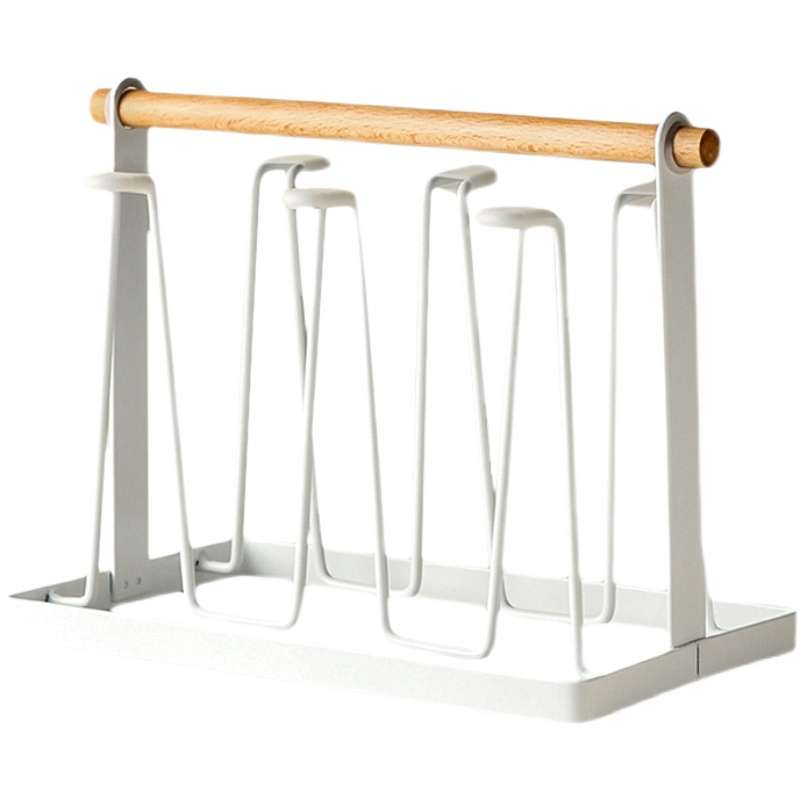 Jiutu home simple white iron cup holder wooden handle water cup drain rack home kitchen rack storage rack