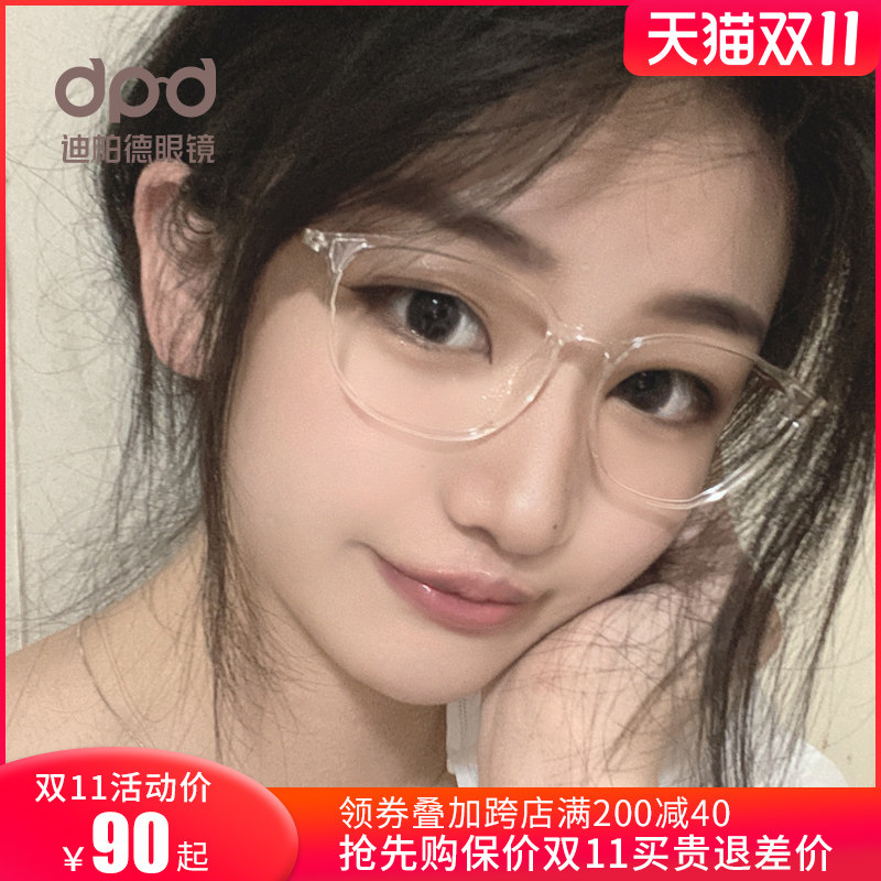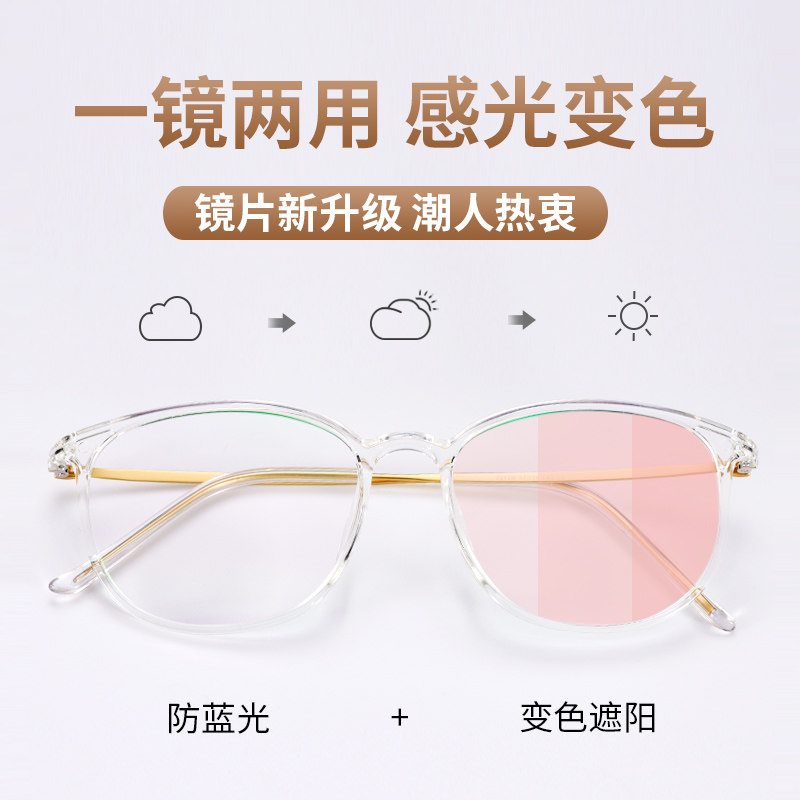 Full frame transparent frame glasses women's ultra-light pure titanium can be equipped with anti-blue light radiation eye protection flat light anti-fog myopia glasses