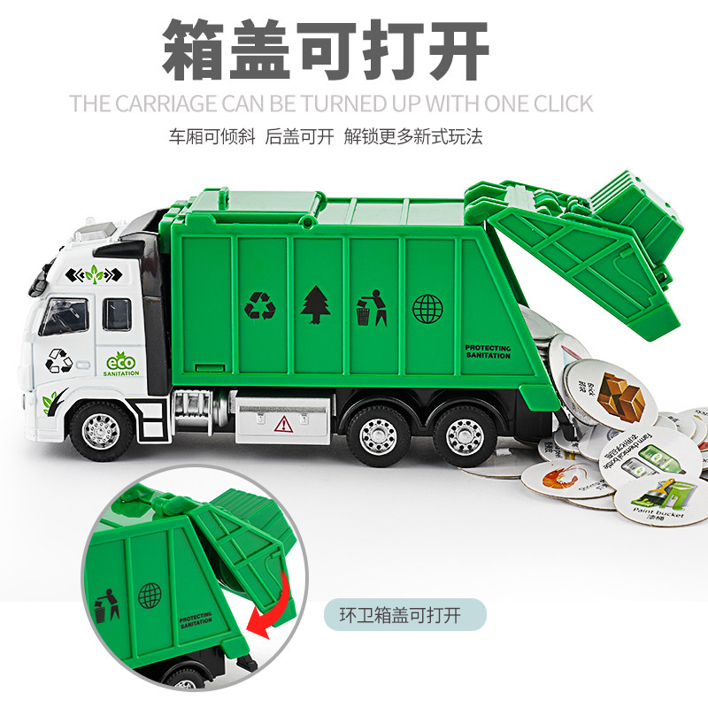 Simulation Alloy Garbage Truck Toy Garbage Sorting Bucket Sanitation Car Children Engineering Model Cleaning Car Boy
