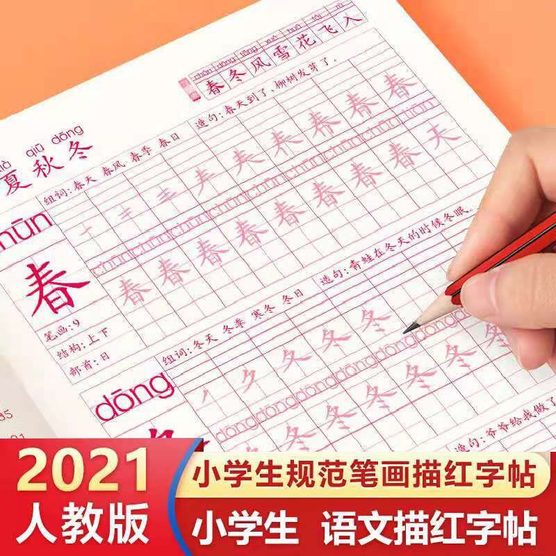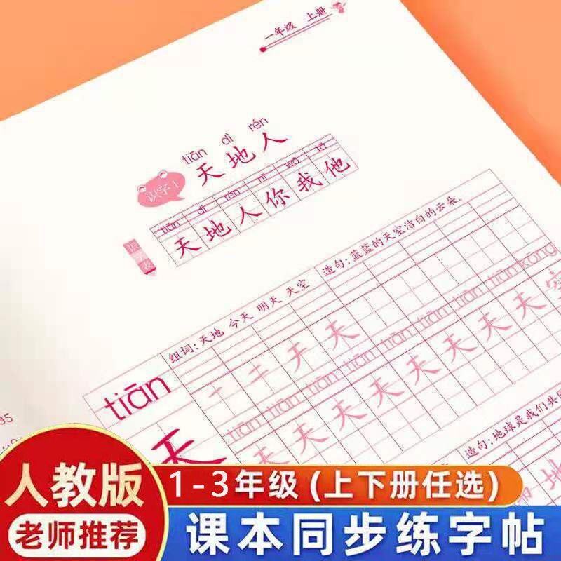 Copybook primary school students first grade second grade three first volume second volume human education version textbook new word synchronous regular script red book