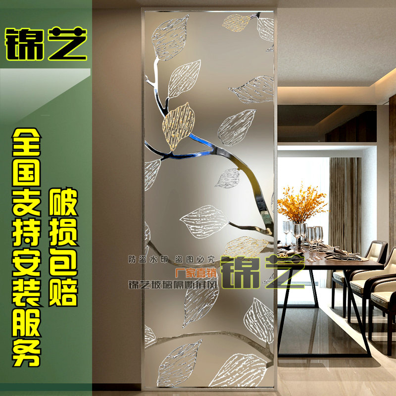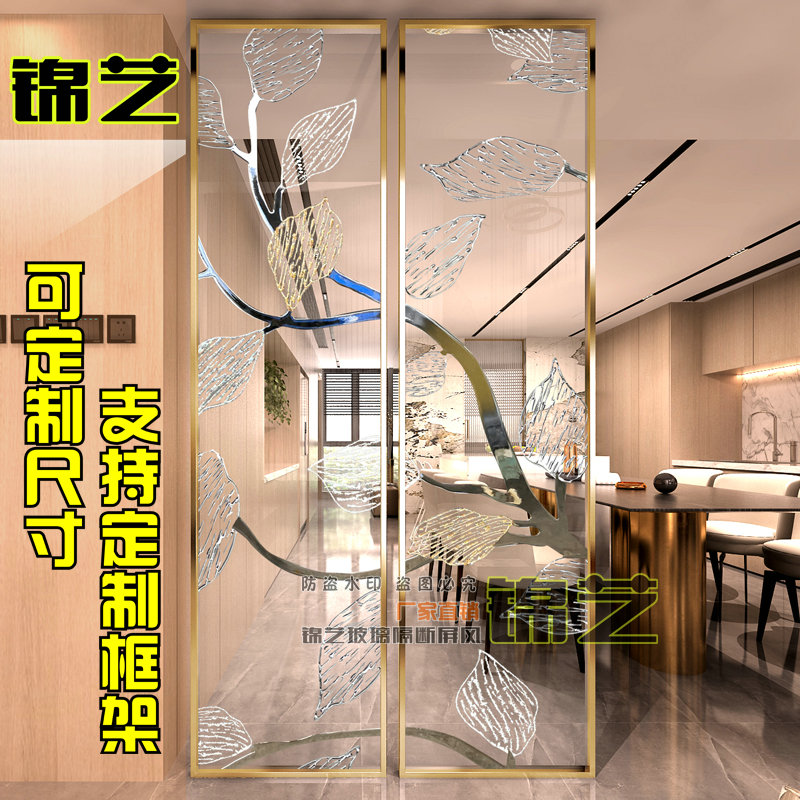 Customized modern simple light luxury sculpture tempered art glass screen partition wall living room entry to the door