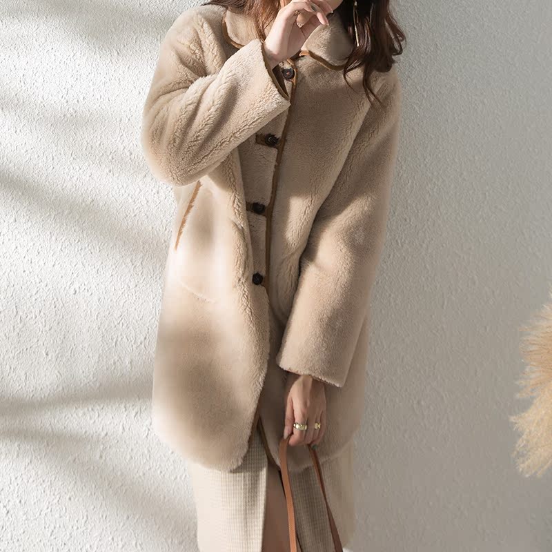 In the winter of 2022, new young fur fur one coat female minimal medium - long edition lamb wool shear cut coat