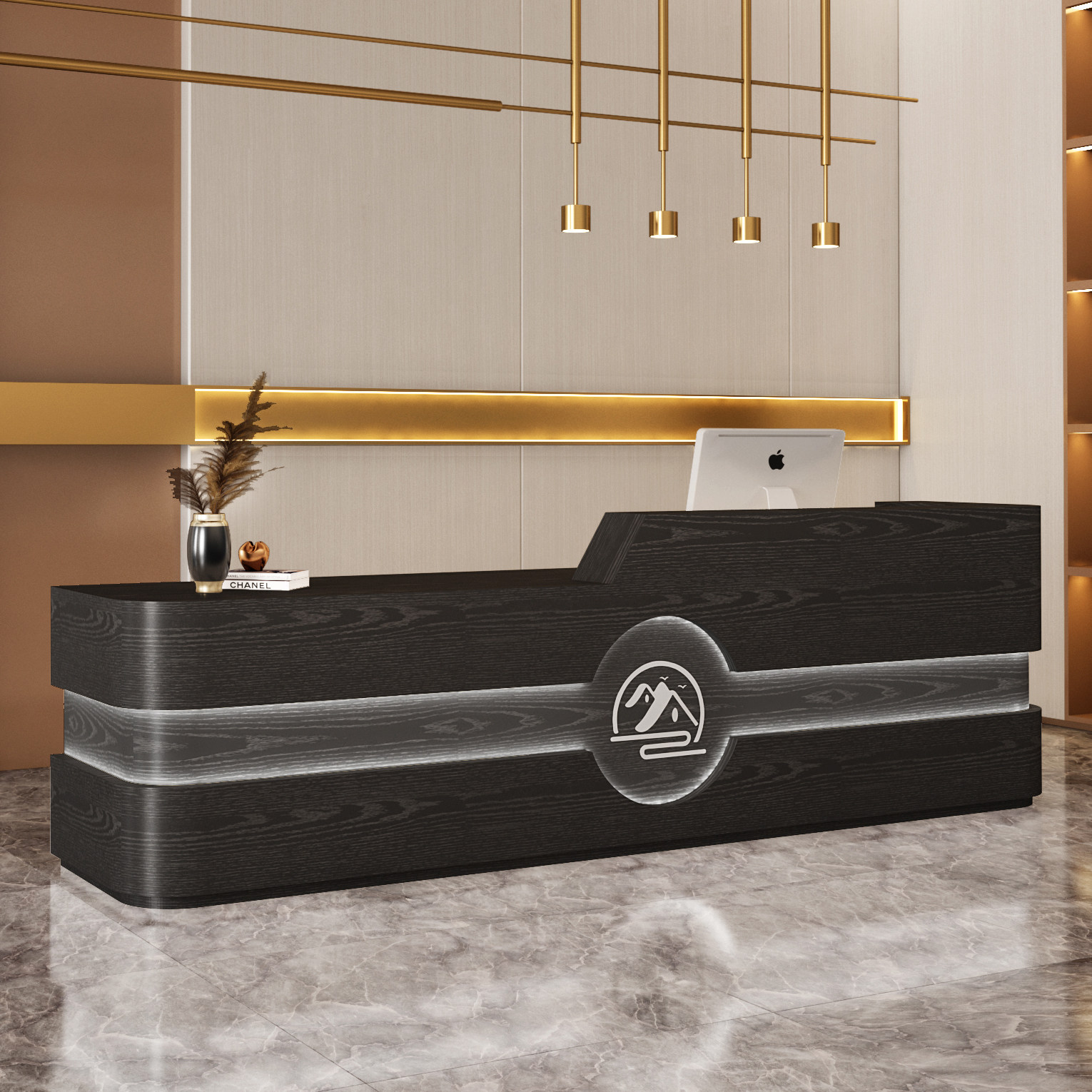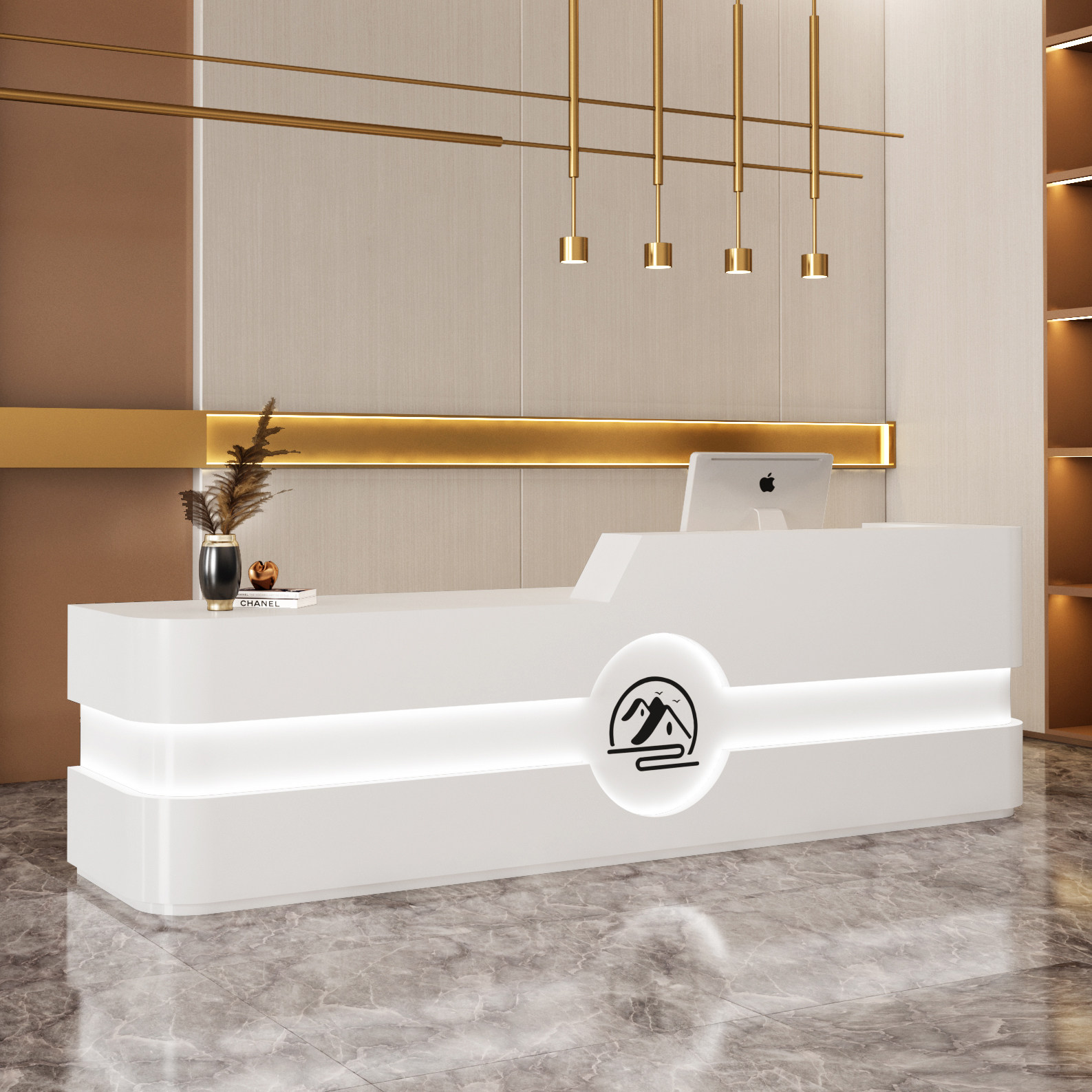 Cashier counter Simple modern curved beauty salon bar counter Company front desk Log color training institution reception desk