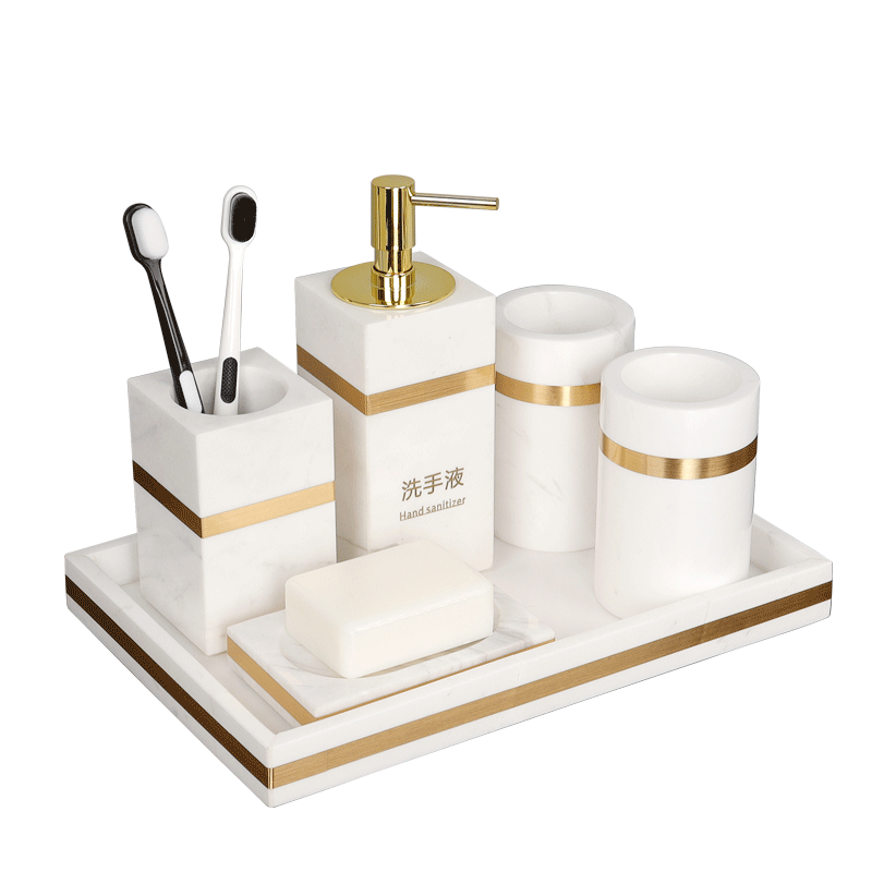 Marble bathroom with five sets of set up tray teeth with washing suit upscale Makeup Room Bathroom Sanitizer Hotel Swing
