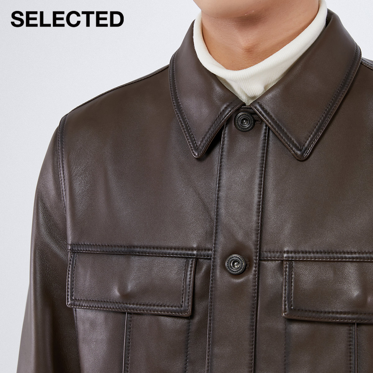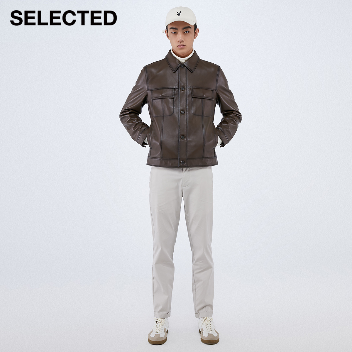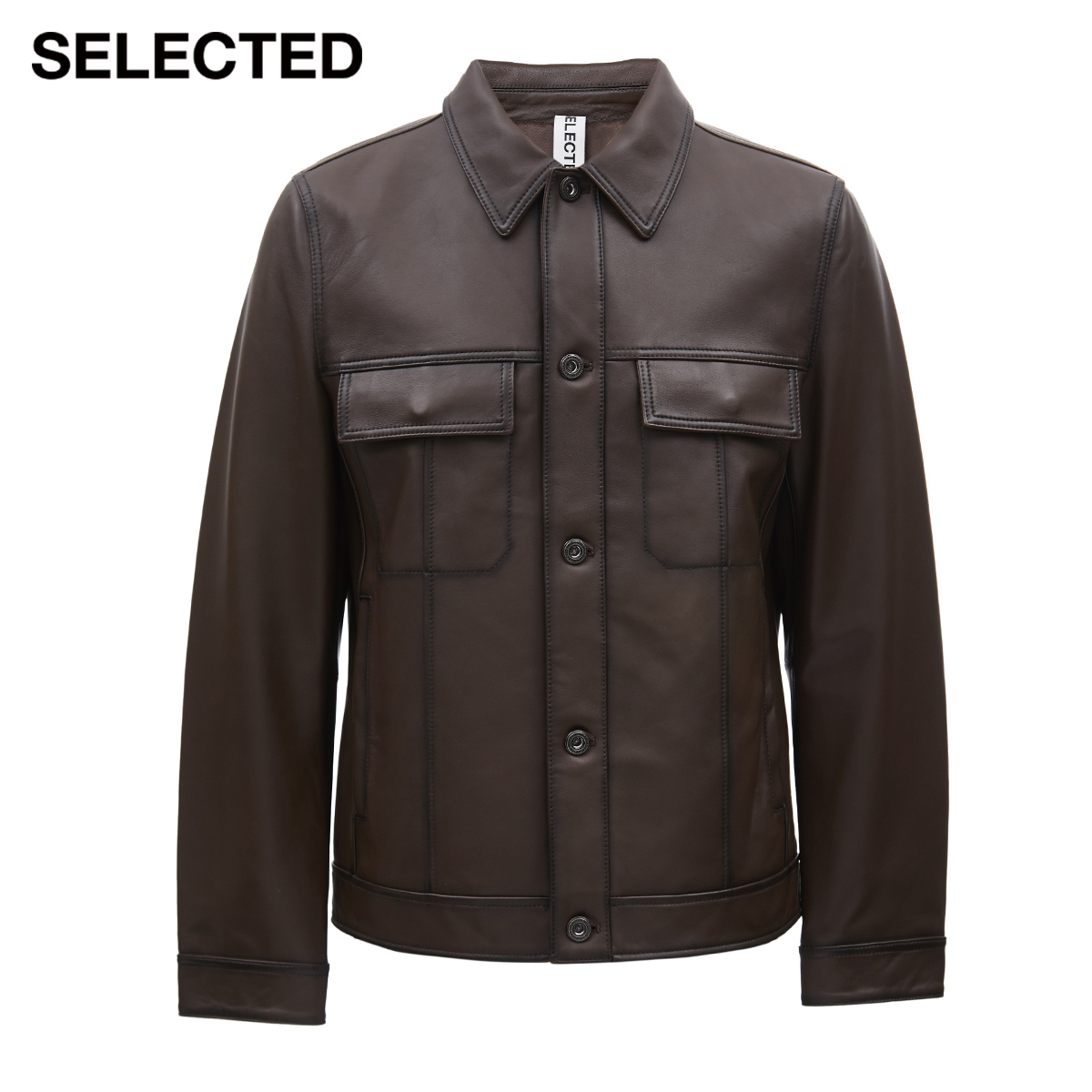 SELECTEDSELECTED autumn and winter new sheep leather motorcycle vintage leather jacket coat men s) 421410001