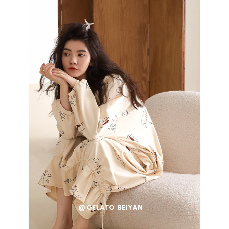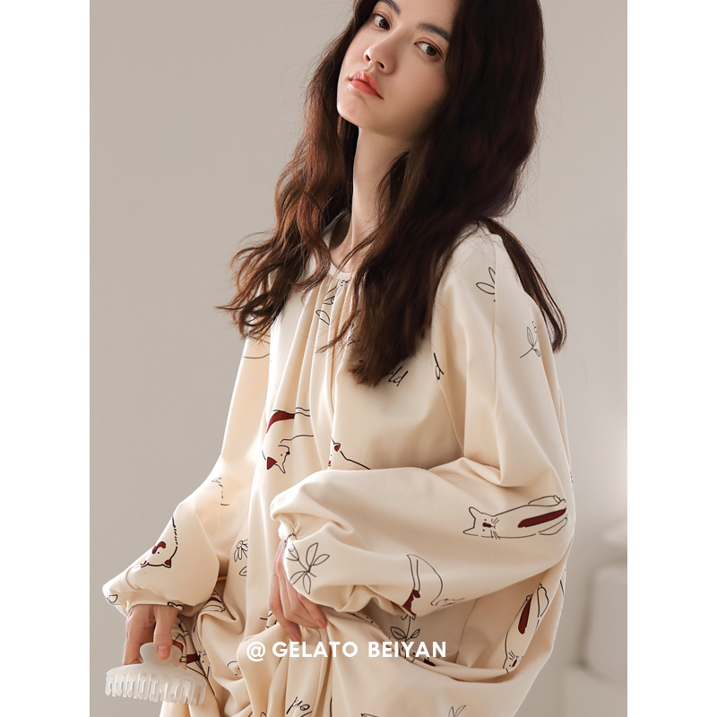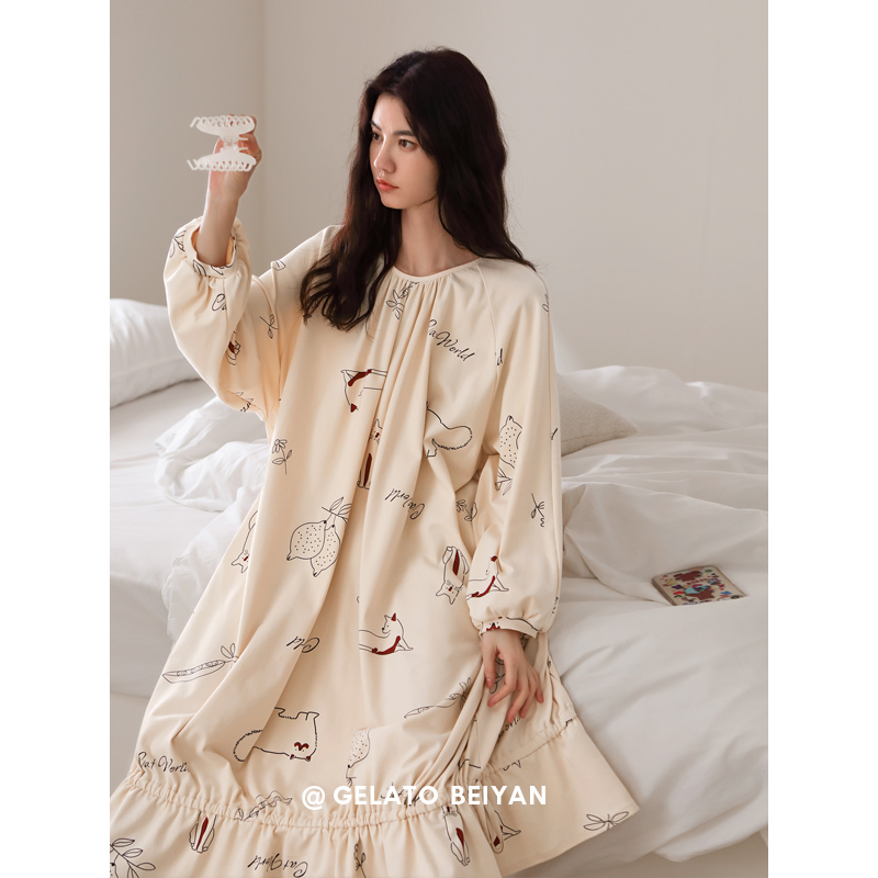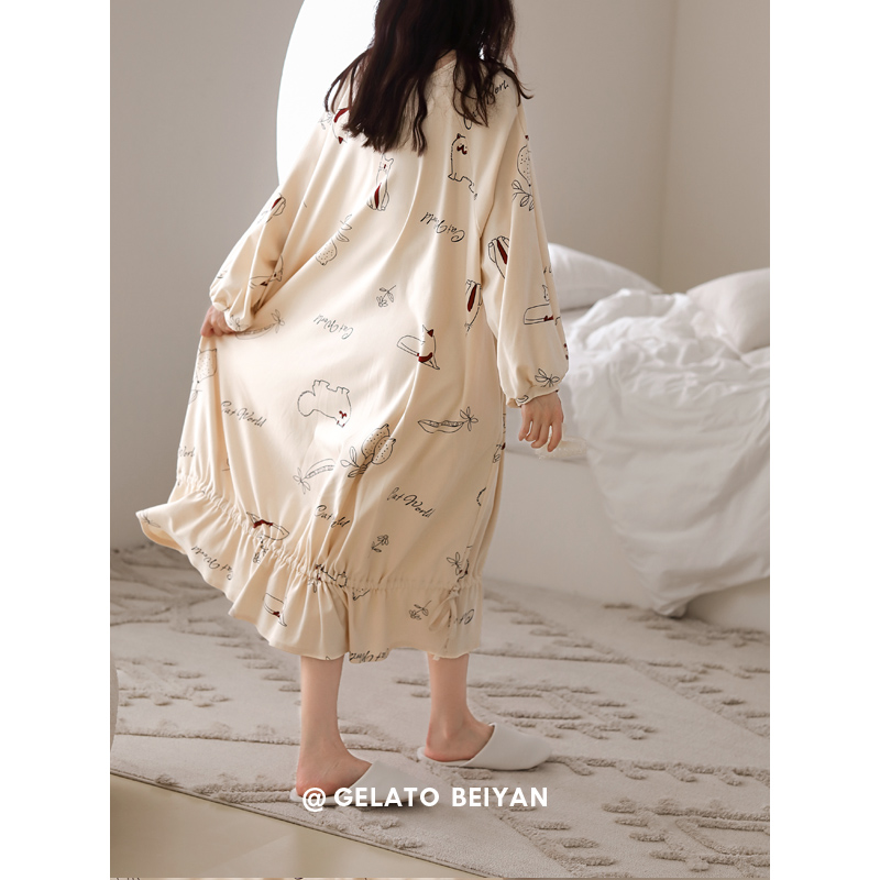Beyyeon Pyjamas Woman Spring Autumn Season Pure Cotton Long Sleeve Loose large size Cotton Sleeping Dress Sweet girl Home Home Dress