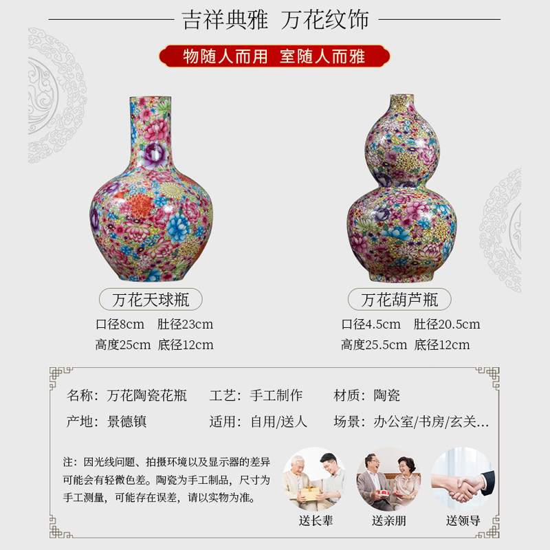 Jingdezhen Vase Ceramic Pendulum decorated with antique hand painted enamel colorful Wanhua home Living room Flower Arrangement Bou Shelf Adornment