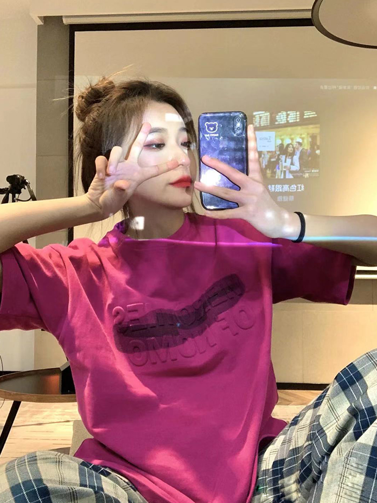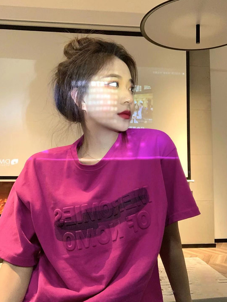 2022 Summer new Korean version Small crowdThe Lean Temperament Blouse 3D Letter Printed Short Sleeve Round Collar T-shirt Woman