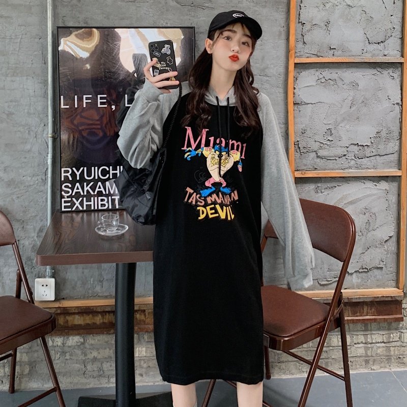 Spring and autumn gestation in Korean version loose with cap sports shirt with long version of increased code gestation of late Fat MM200 catty