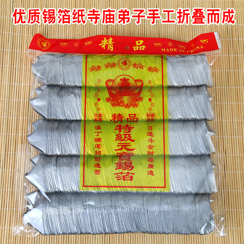 Shanghai tin foil paper Ming coin paper money tin foil paper Yuanbao gold and silver 1000 Buddha with Yuanbao Ching Ming Festival hand-folded