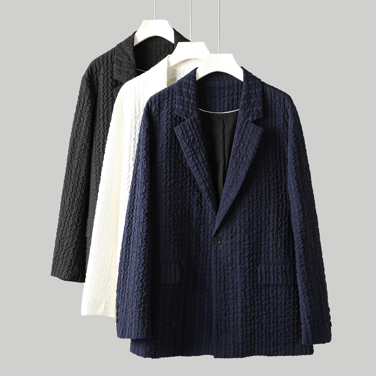 Fold casual suit men autumn Japanese fabric bubble yarn folding fabric fabric fabric fabric fabric fabric fabric fabric fabric fabric fabric folding fabric