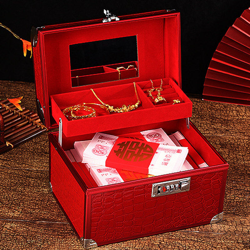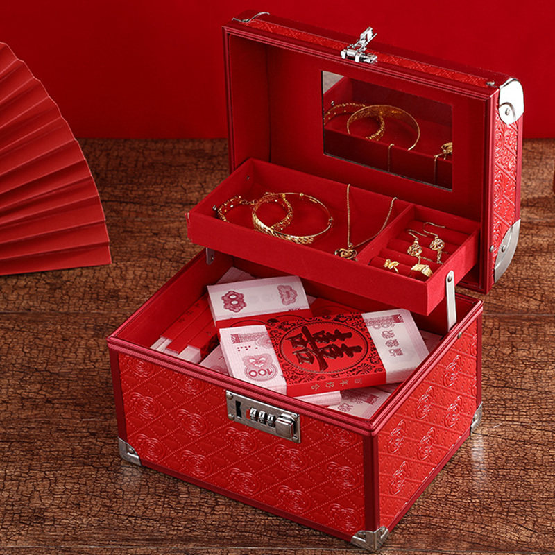 Gift box password box red wedding jewelry box bride dowry woman dowry gift storage box wedding gold box