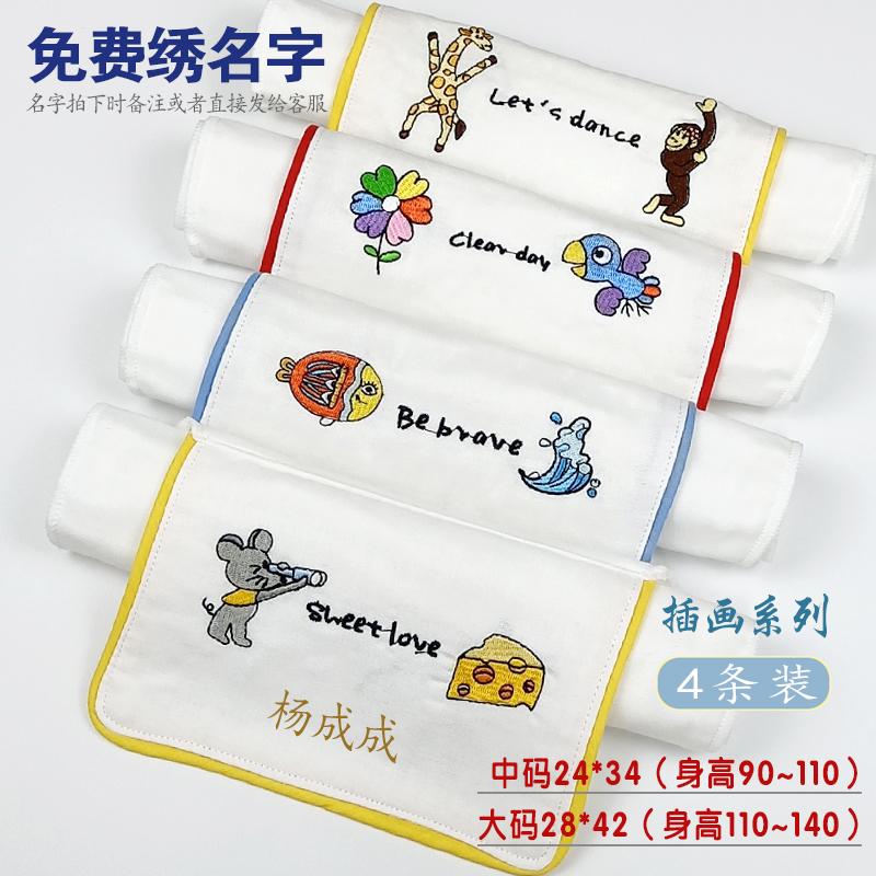 Sweating towel for children pure cotton kindergarten embroidery name boy and girl baby all cotton gauze adult female adult sweat towel