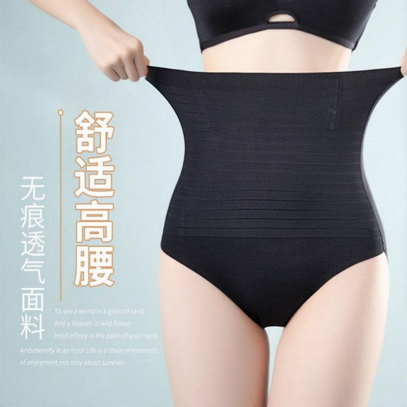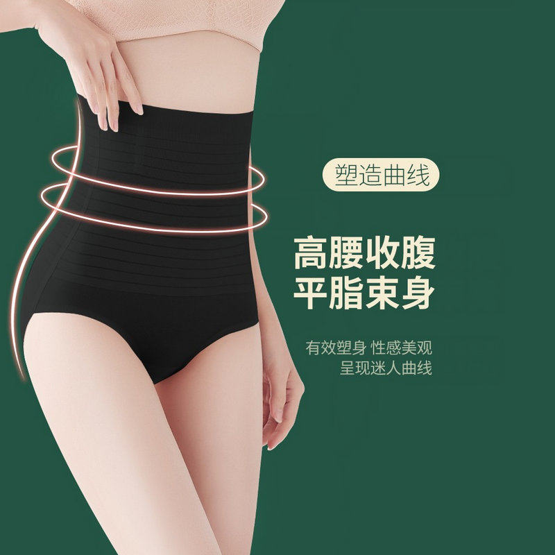 Ice silk panties for girls seamless high waist tummy control waist small belly dark complexion pure cotton crotch sexy hip lifting large size thin