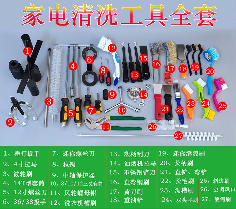 Home appliance cleaning professional tool wave wheel washing machine dedicated full set of oil smoking machine windwheel puller scraper