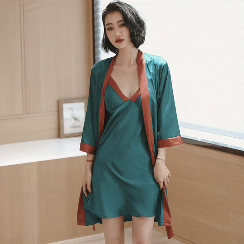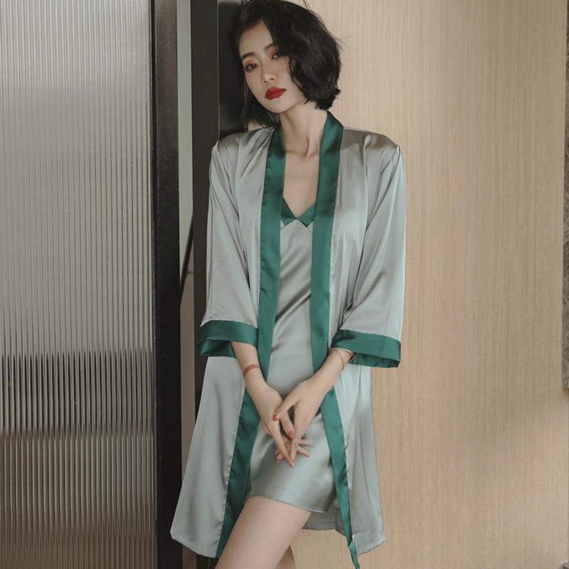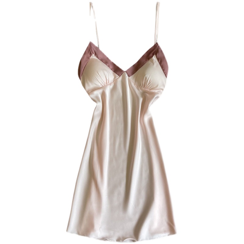 SADO YINER summer ice silk pajamas women with chest pads sexy suspenders nightdress spring and autumn home clothes two-piece set - Taobao