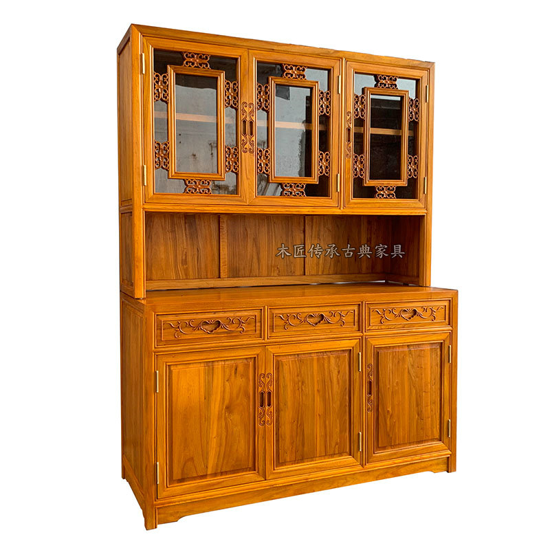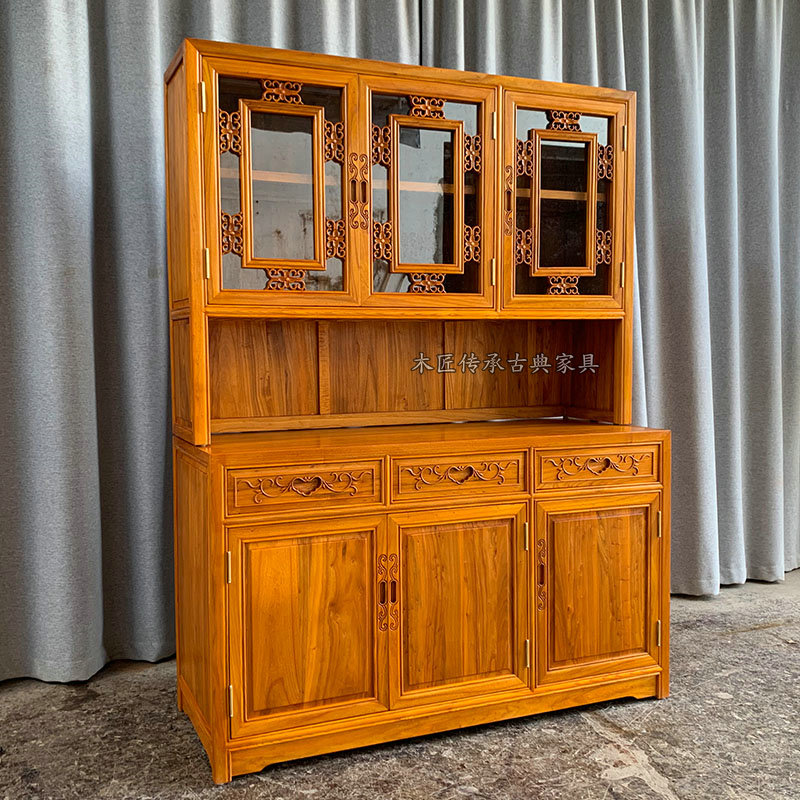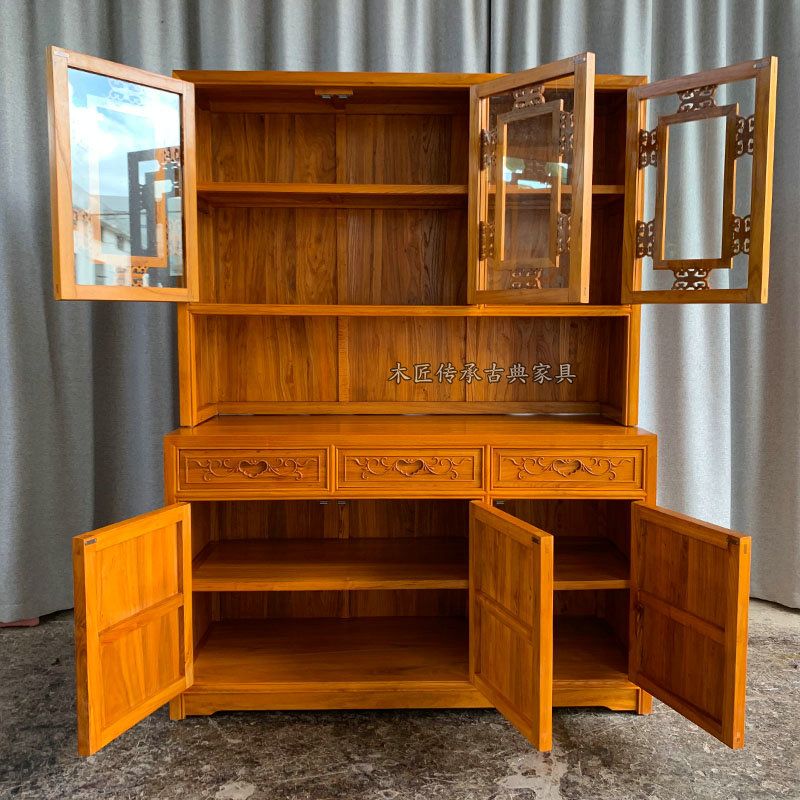 Chinese-style bookcase old elm entry porch locker carved three-door dining cabinet partition cabinet integrated against the wall custom-made