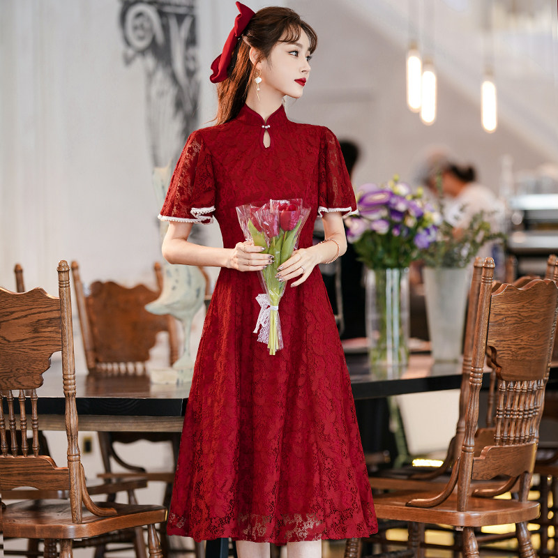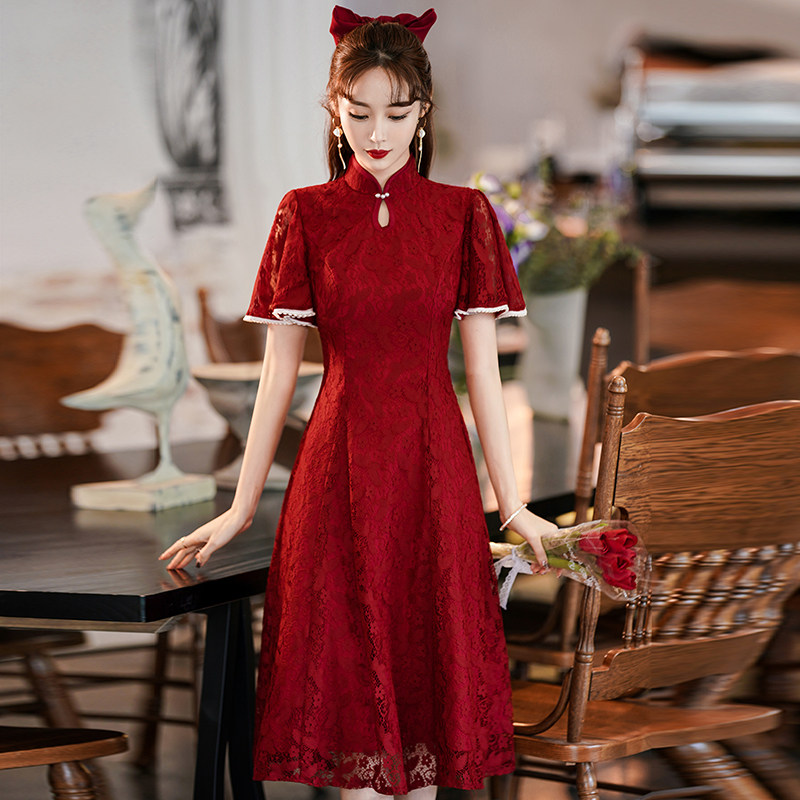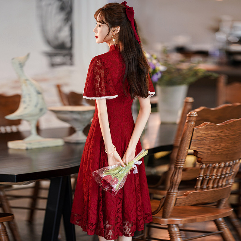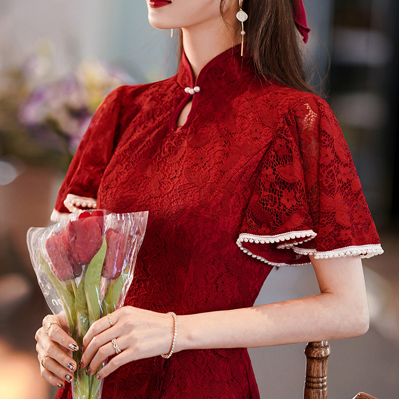 Qipao toast to the bride 2022 new wedding engagement gown red cover for everyday summer and little subreddits
