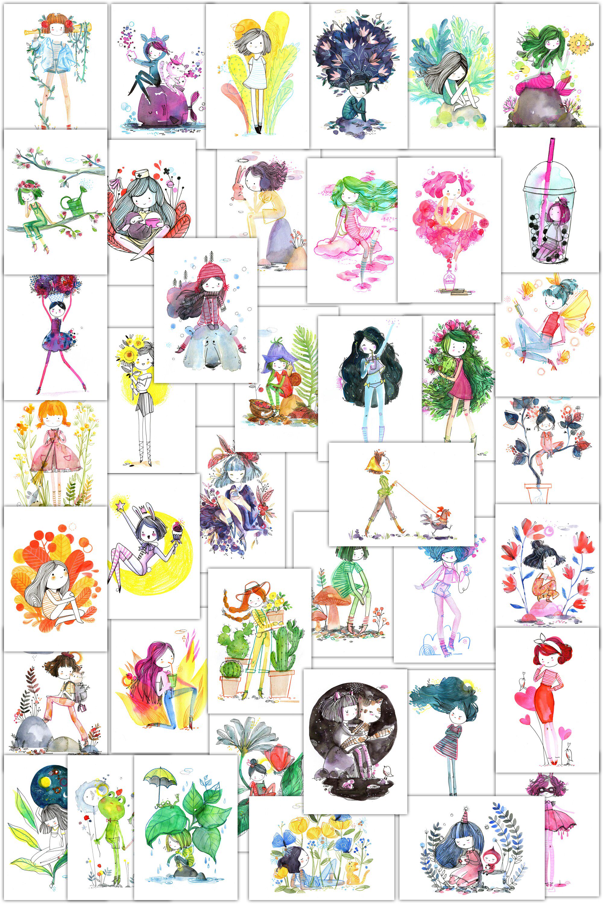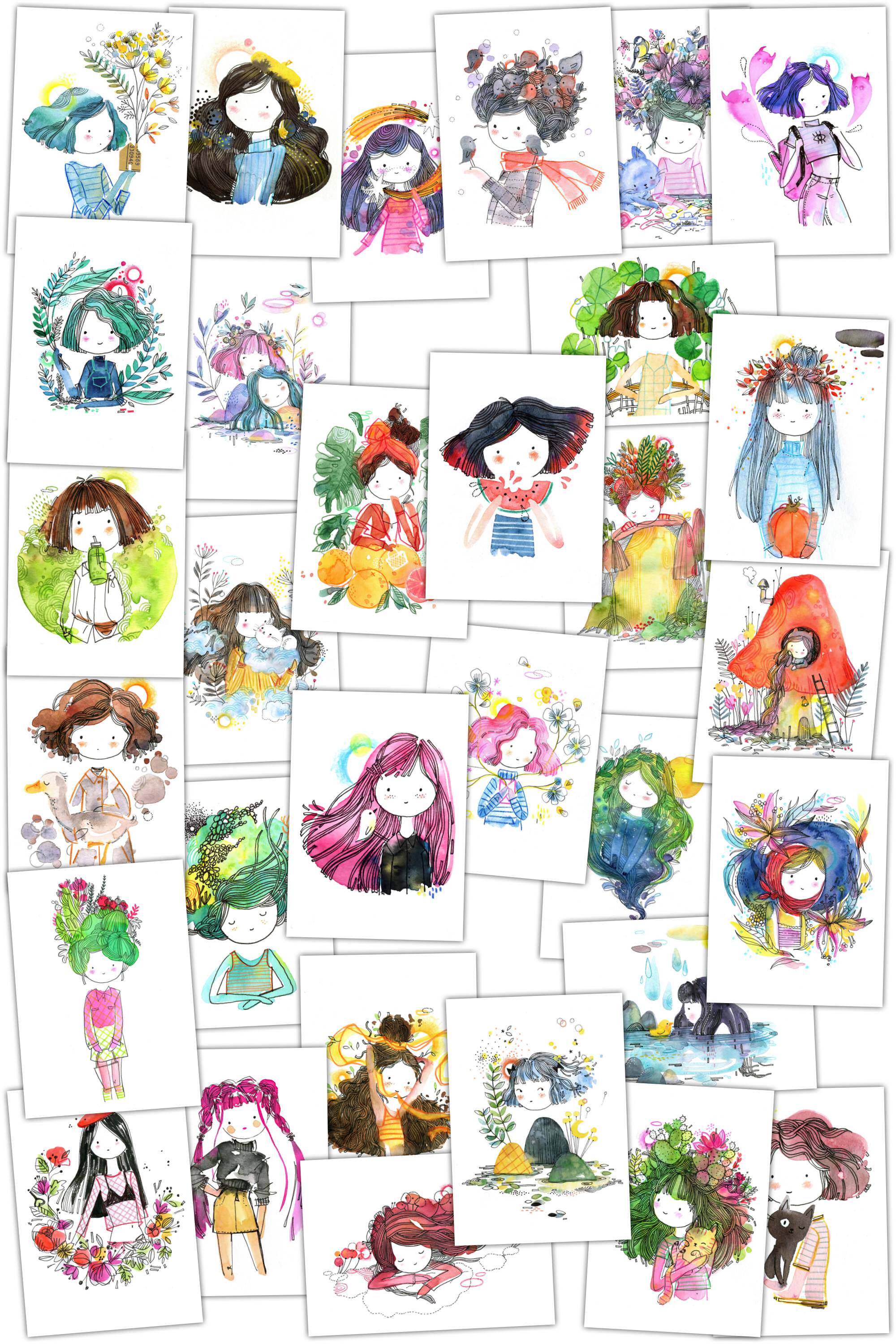 Watercolor girl A (A5) watercolor girl A (A5) plastic packaging watercolor girl B (A5) watercolor girl B (A5) plastic packaging