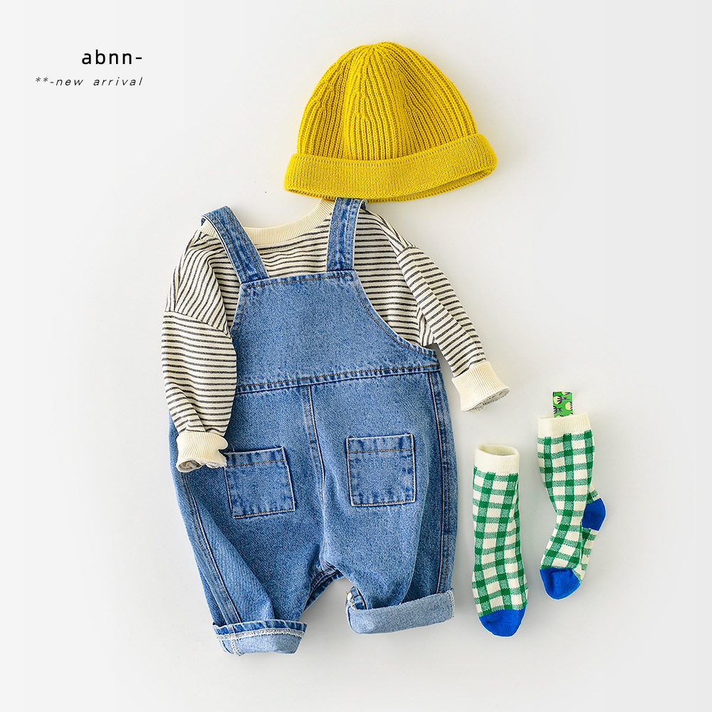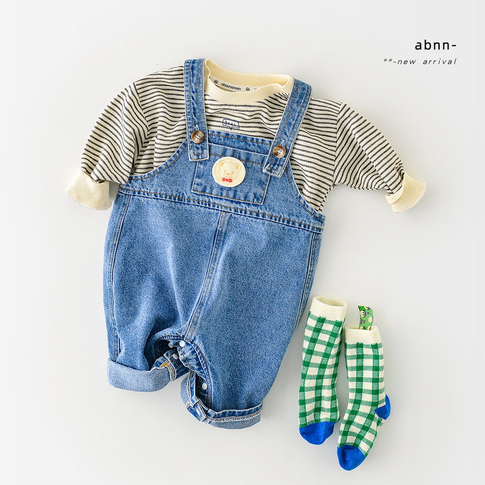 2022 Spring autumn season new Korean version ins and women's baby cartoon denim cub baby cuddling baby bag pants baby casual pants