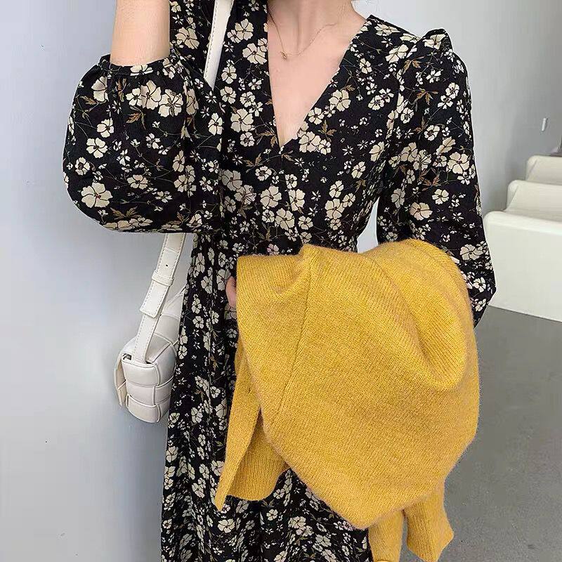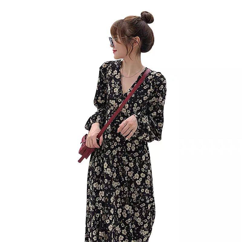 Autumn and winter new base chiffon floral long version pregnant women dress large size loose pregnancy long skirt set