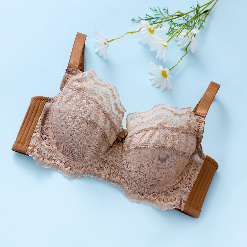 Ultra-thin non-sponge underwear women's big breasts show small anti-sagging summer bra with side collection breast reduction breast lace bra
