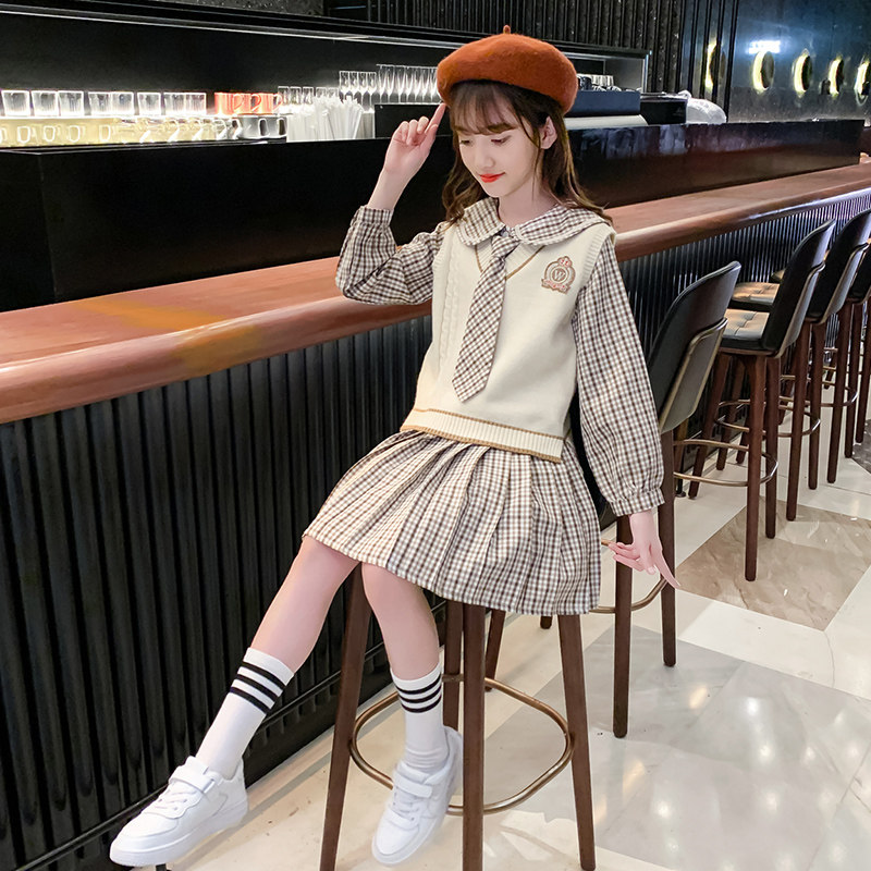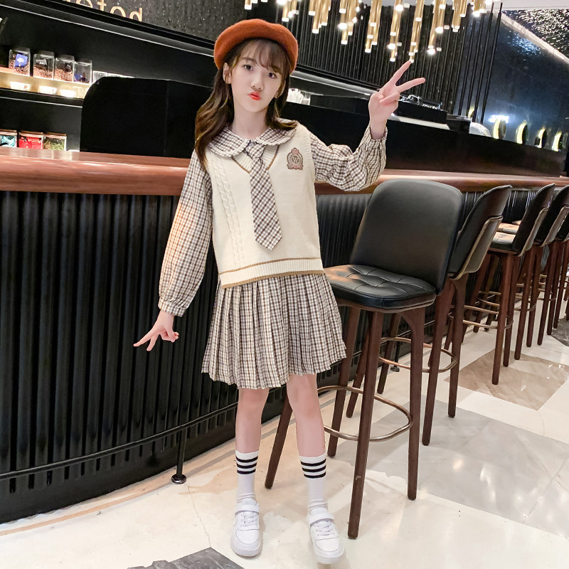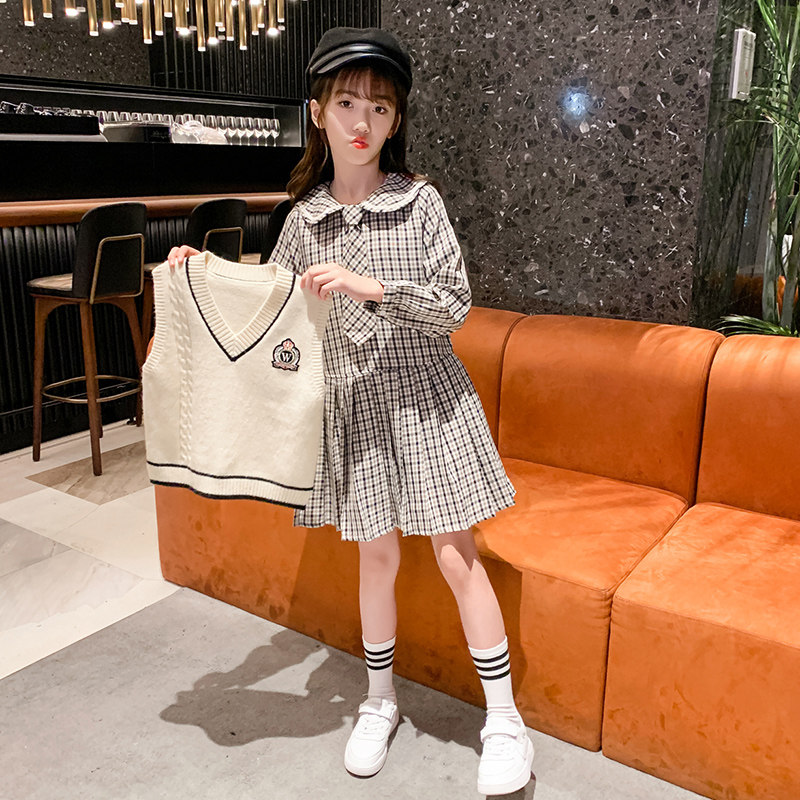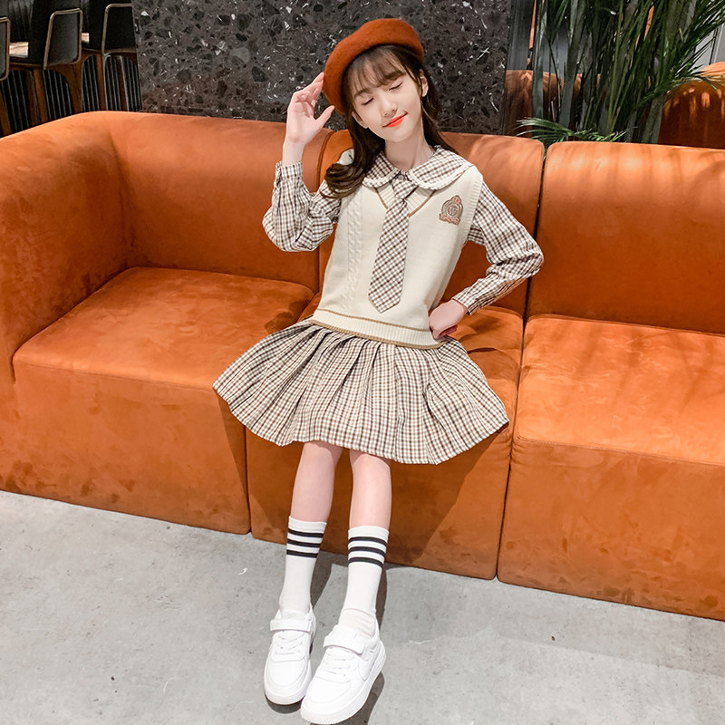 Girl Foreign Dress 2022 New Foreign Pie Children Spring Suit Dress Nets Red Great Boy Academy Wind Spring Dress Skirt Tide