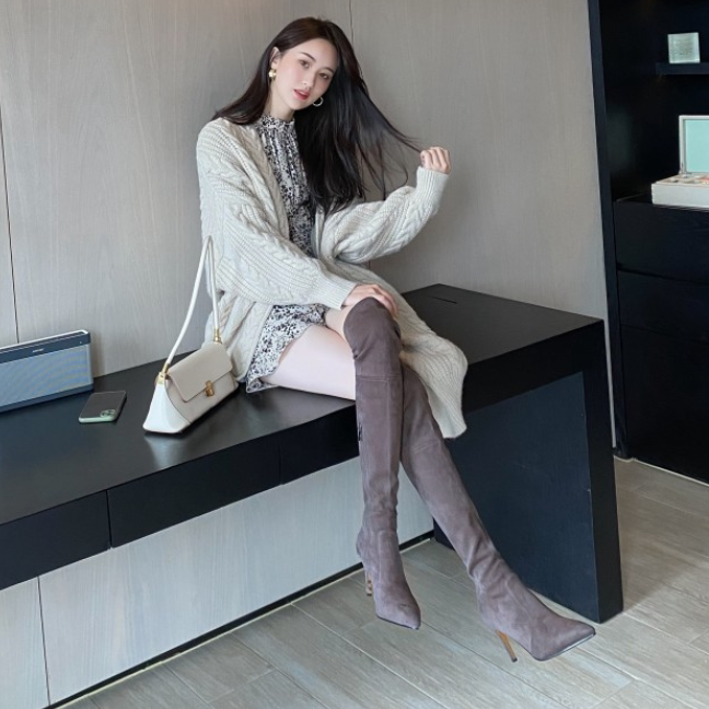 Leather over knee boots and high boots with pointed fashion elastic boots in autumn and winter 2023