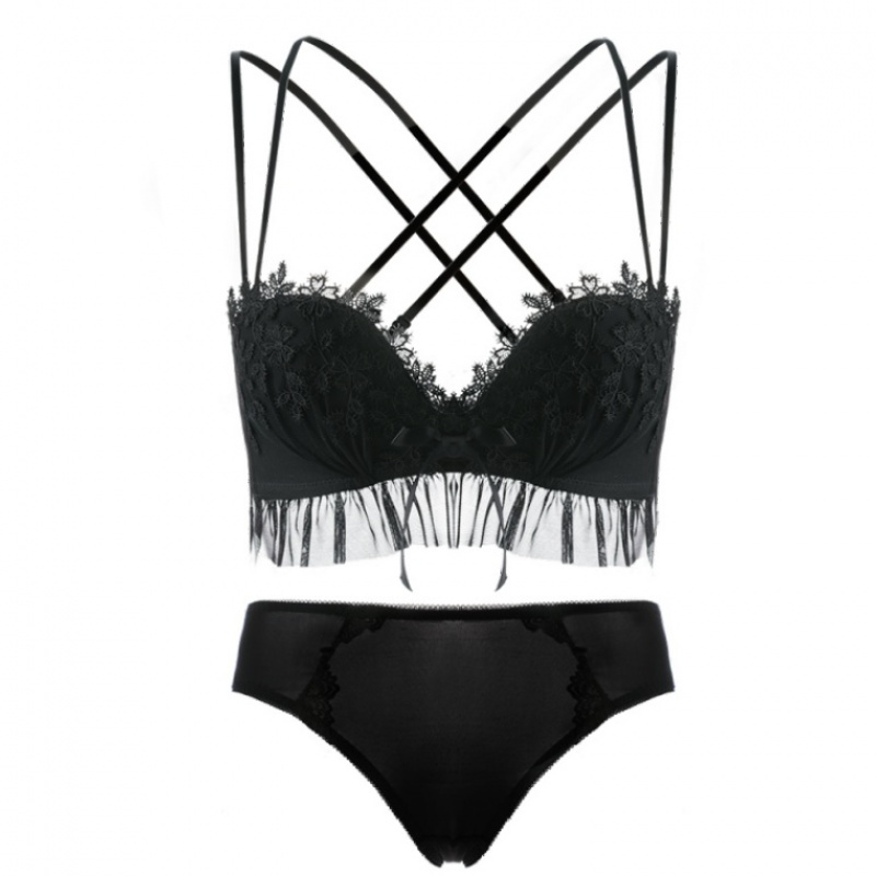 Dianfen Sexy lingerie women's small breasts gathered with big bra No steel ring Lace Silk Beauty Back Underwear Suit Summer
