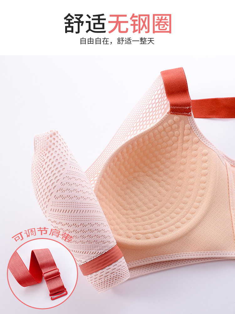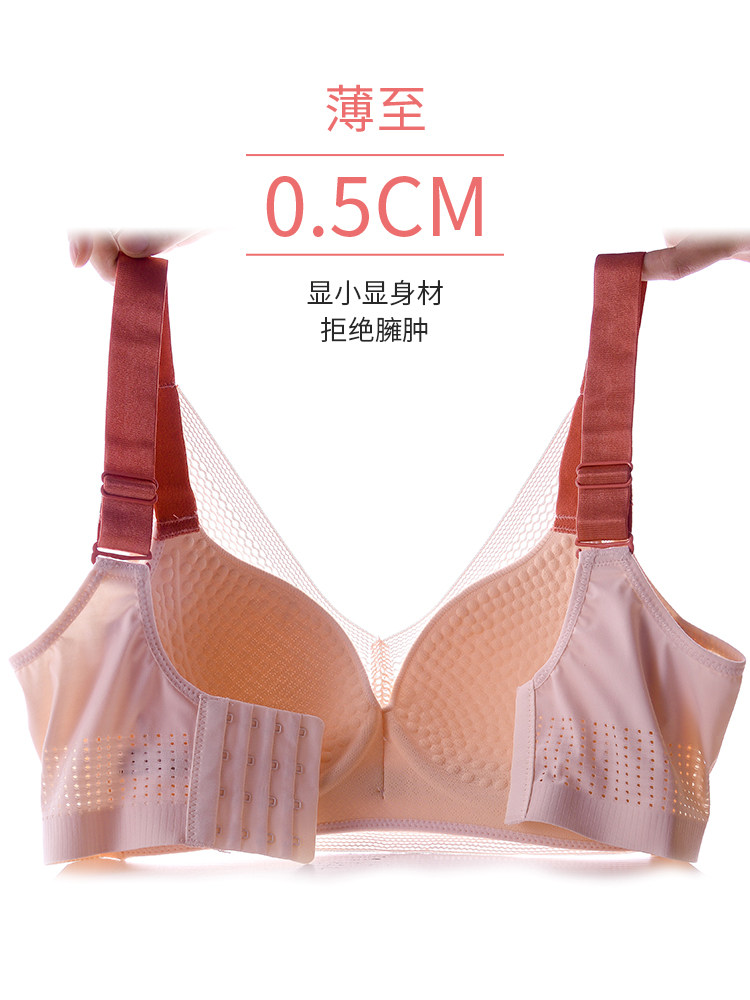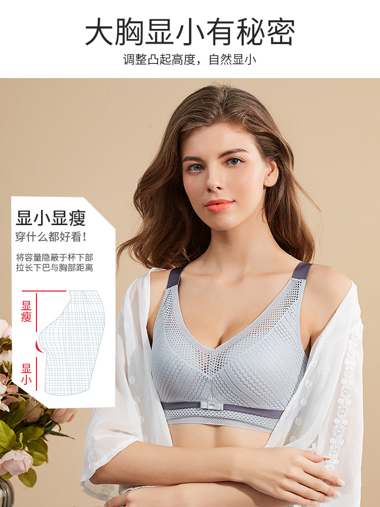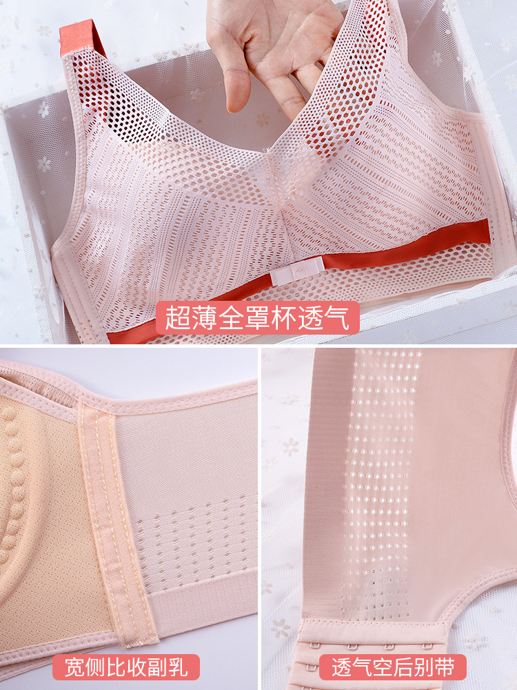Underwear women no steel ring summer gathered thin section breathable big breasts show small anti-sagging upper support large size fat mm bra