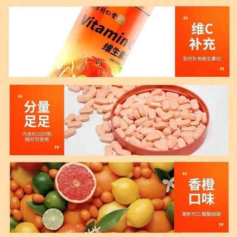 Nanjing Tongrendang Green Gold Home Vitamin C Chewing Tablets VC1000 Tablets Candy Orange Flavored Vitamin C Tablets